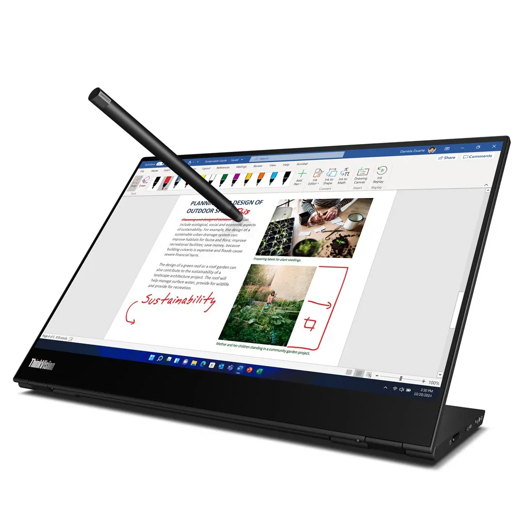 Experience vibrant visuals with the Lenovo Thinkvision M14t, a 14" 2.2K touchscreen display.
