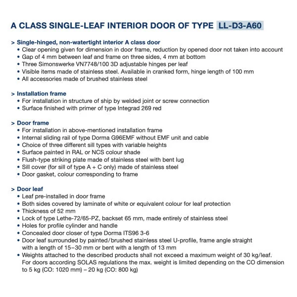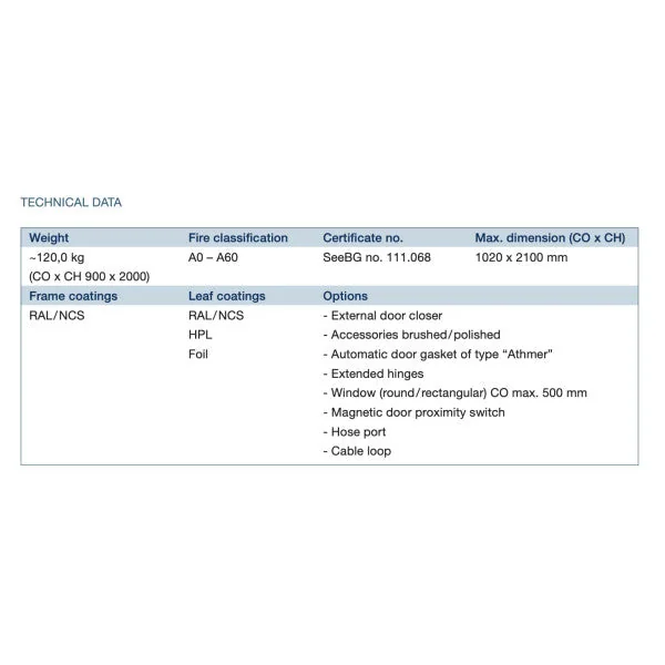 The Letha LL-D2-A60 fire-resistant hinged door combines optimal safety with a sleek and modern design. This door, made from high-quality stainless steel, is the ideal solution for situations where fire safety is crucial, without compromising on aesthetics.