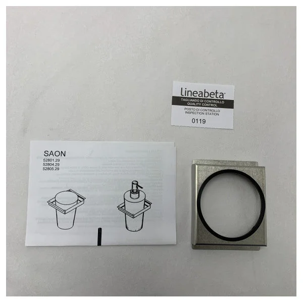 - Includes dosing pump with spring mechanism for accurate and hygienic soap dispensing