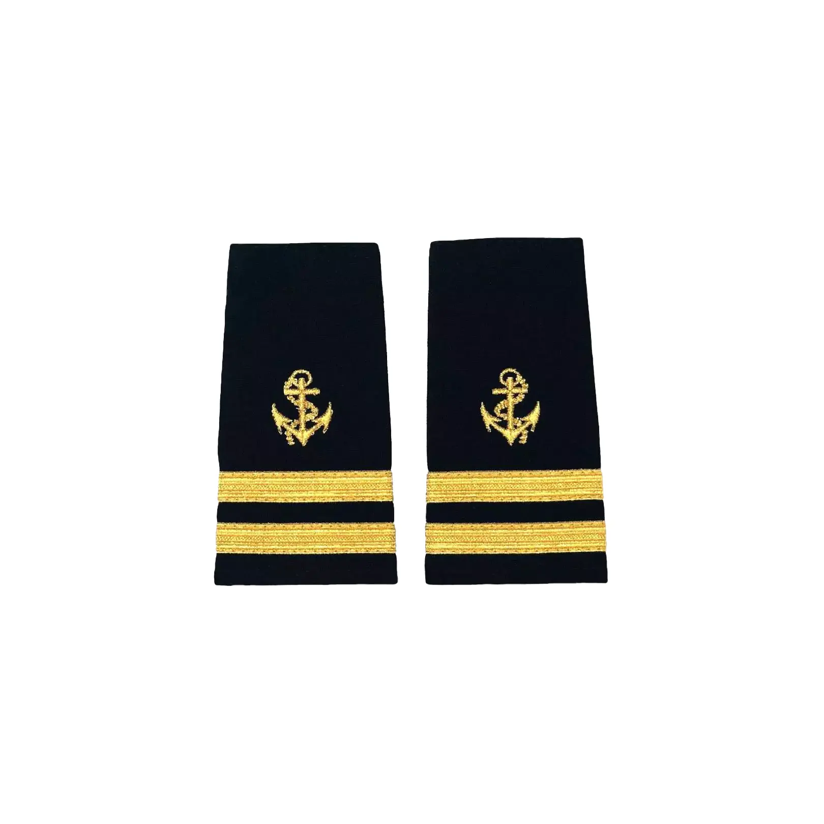 Premium gold two-stripe epaulet with machine-embroidered anchor insignia.