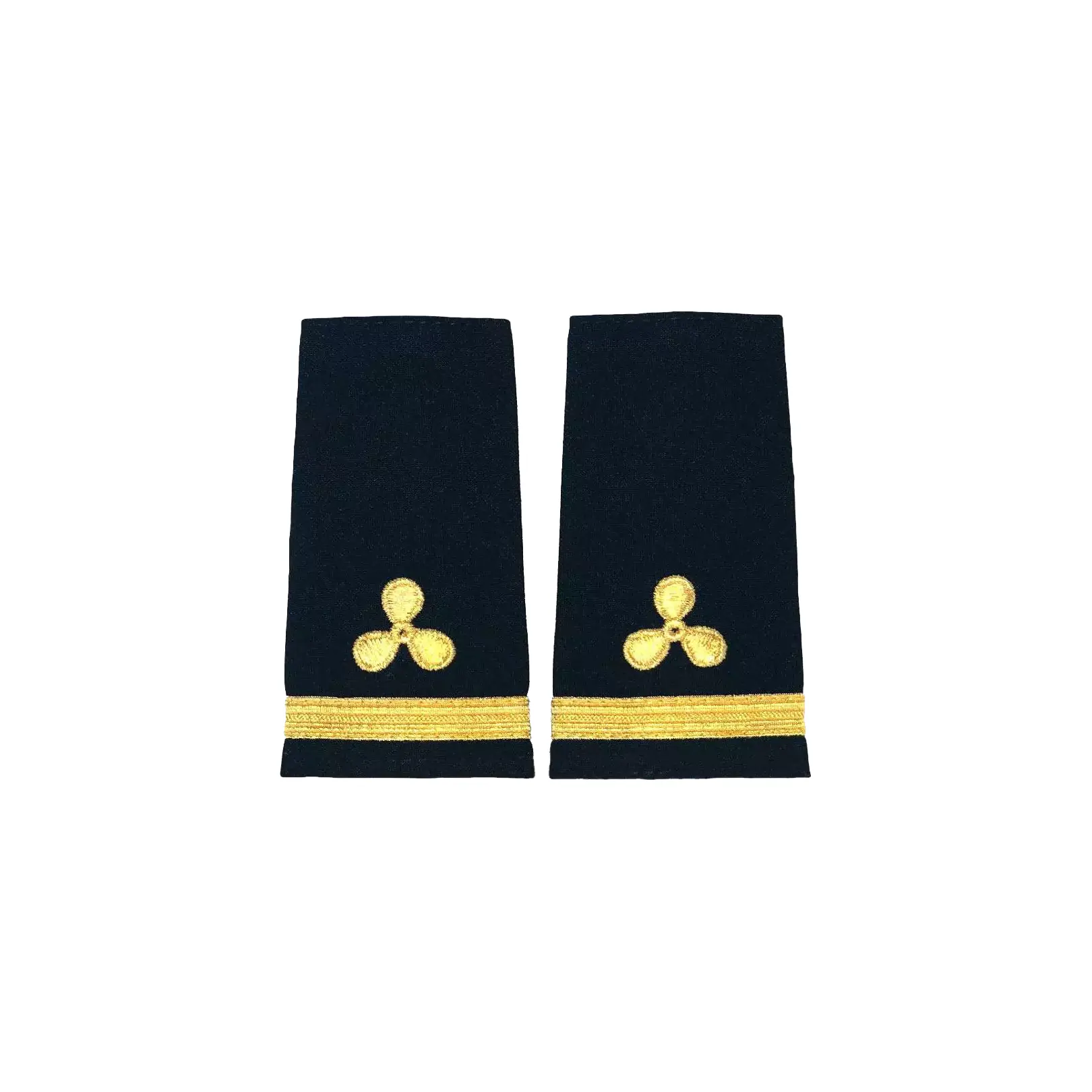 Premium gold one stripe epaulet with machine embroidered propeller insignia for a stylish marine look.