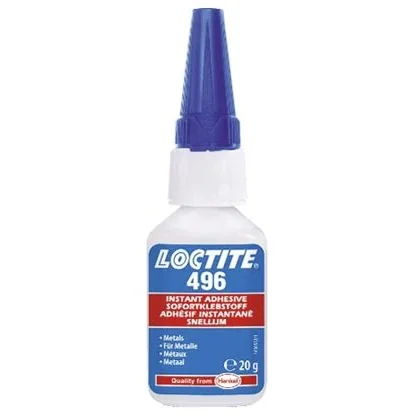 Loctite Super GlueThe Loctite 496 super glue is a 20g, low viscosity for use with cyanoacrylate adhesive. It is a general-purpose methyl-based instant adhesive that is particularly suited to bond metals. It offers a fixture time of 10 to 30 secondsApplicationsPlastic Rubber PolyolefinsCertificationsANSI/ESD S20.20:2014 BS EN 61340-5-1:2007