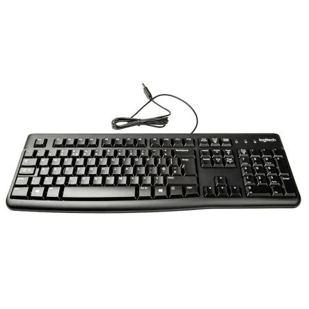 *Tested under limited conditions (maximum of 60 ml liquid spillage). Do not immerse keyboard in liquid. Logitech Keyboard K120. The Logitech Keyboard K120 for Business is the budget-friendly keyboard that ‘s built to last. You ‘ll enjoy a comfortable and quiet typing experience thanks to the low-profile keys that barely make a sound, and standard layout with full-size F-keys and number pad. Virtually silent, low-profile keys Industry standard layout with full-size F-keys and number pad Sleek, thin profile keyboard with a spill-resistant design* Plug-and-play USB connection Bold, bright white characters Sturdy, adjustable tilt legs Curved space bar. System Requirements:. Windows-based PC Windows® XP, Windows Vista® or Windows® 7 USB port Linux® Linux® kernel 2.6+ USB port