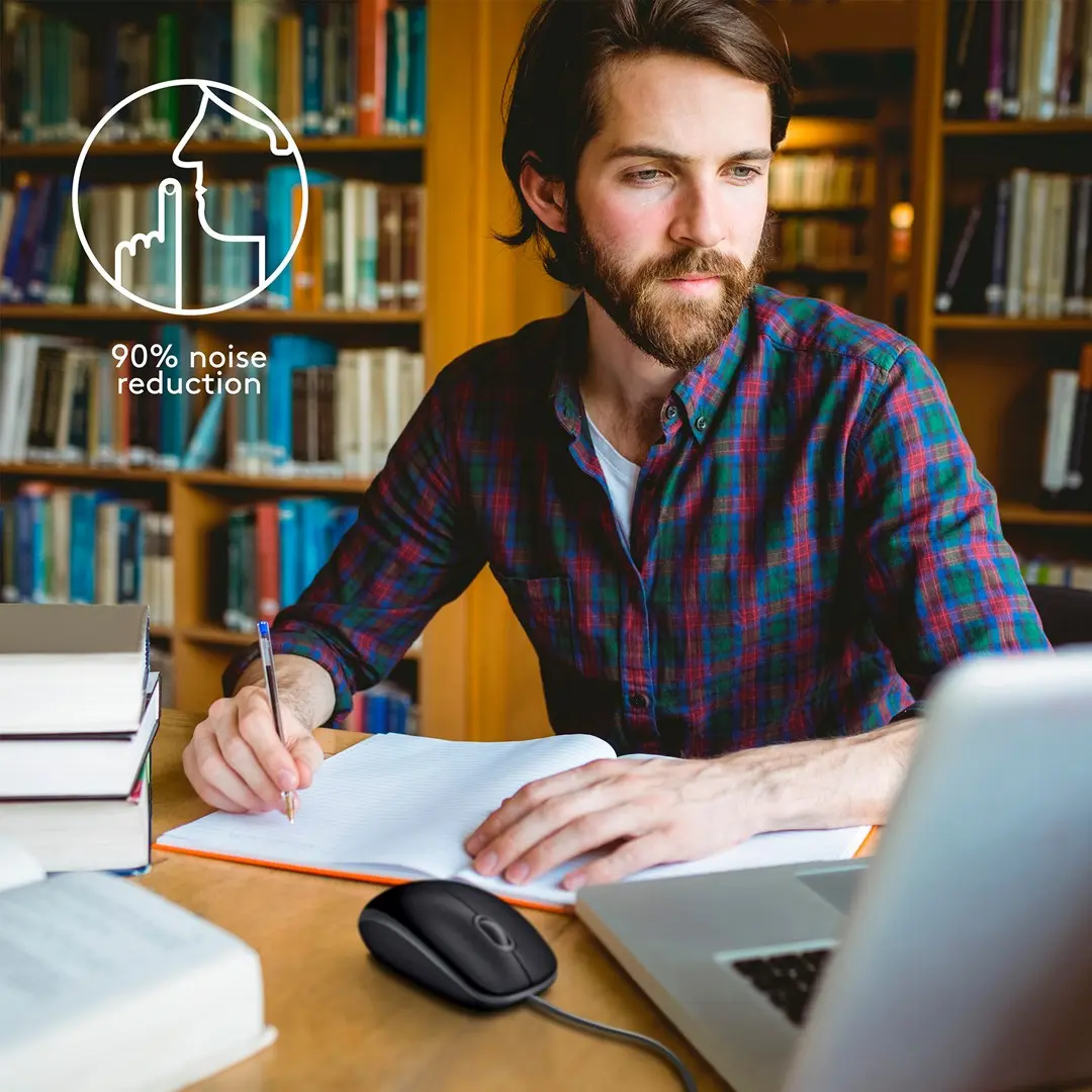 Experience silent control with the Logitech M110 Silent Mouse, featuring 90% noise reduction and a comfortable ambidextrous design.