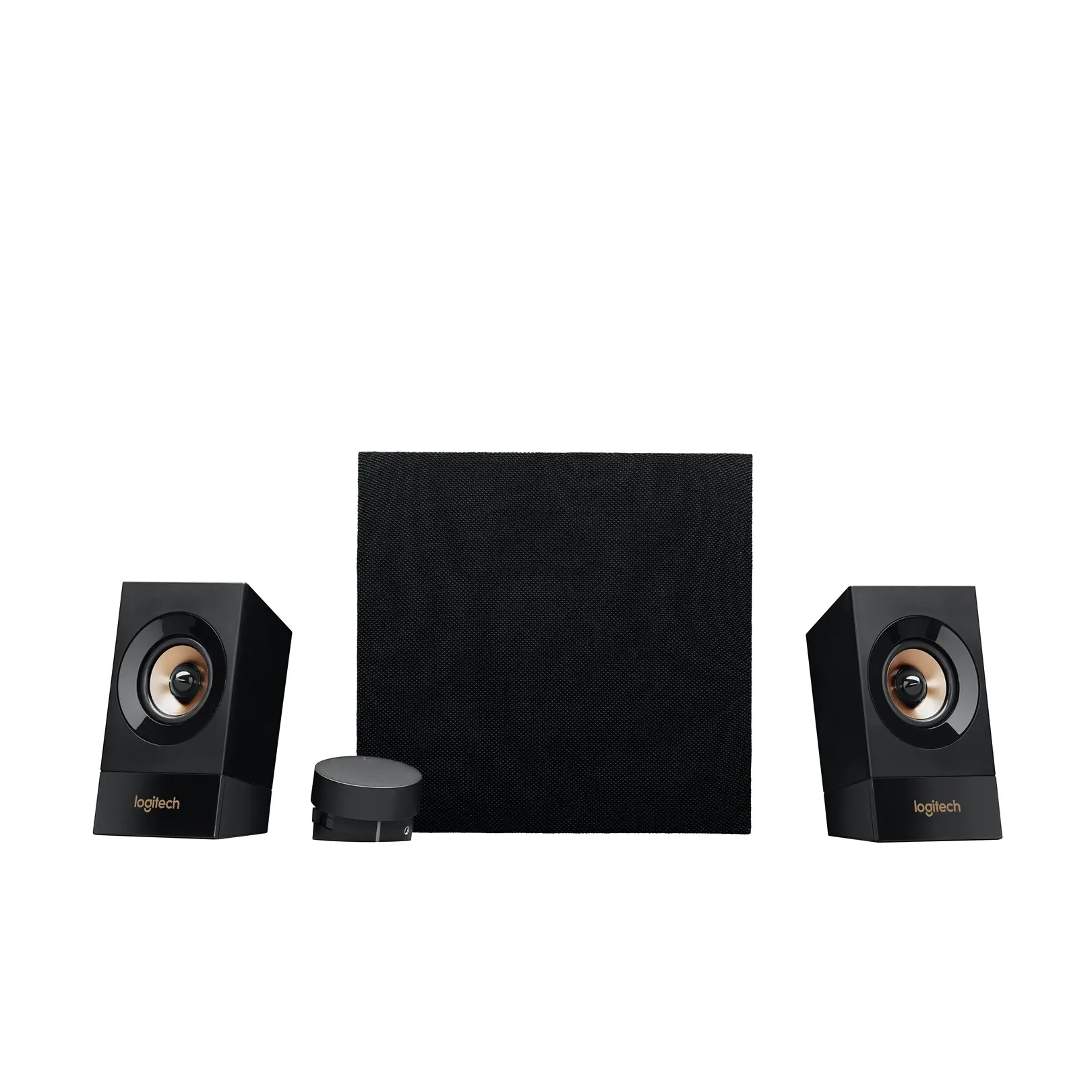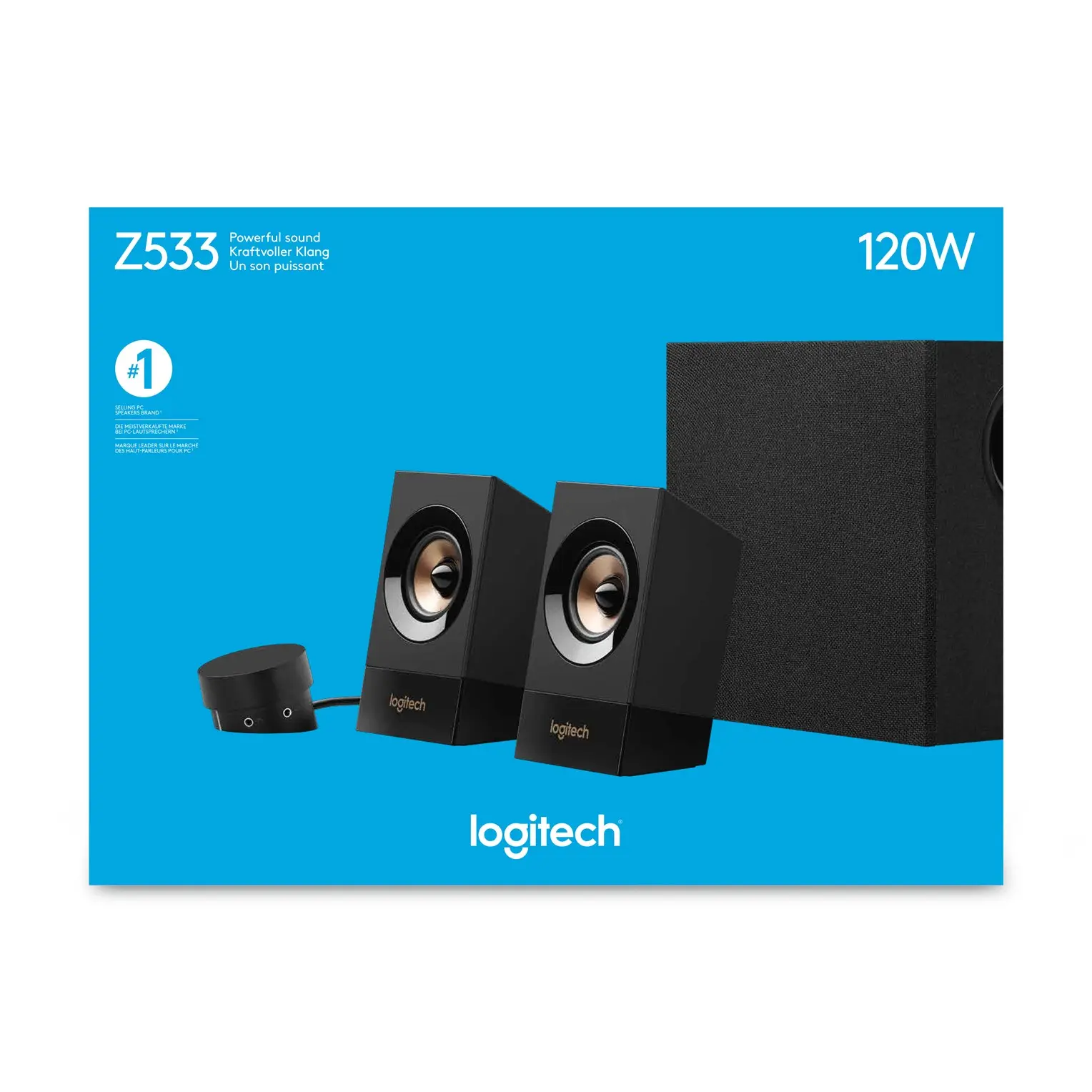 Powerful sound that moves you.With 120 watts* of peak power, the Logitech® z533 Multimedia Speaker system unleashes powerful acoustics with rich lows and detailed highs for robust, room-filling sound. Take your music, movies and games to the next level with rich, dynamic bass thanks to the front-facing subwoofer with 2.25” full range drivers. Easily command your sound using the wired control pod, which allows access to essential speaker controls such as power, volume and bass, along with a headphone jack and extra 3.5mm input. Multiple connectivity inputs, including 3.5mm and RCA, let you connect and listen to almost any device with an audio output, such as a computer, tablet, smartphone — or even a TV. *60W of RMS power