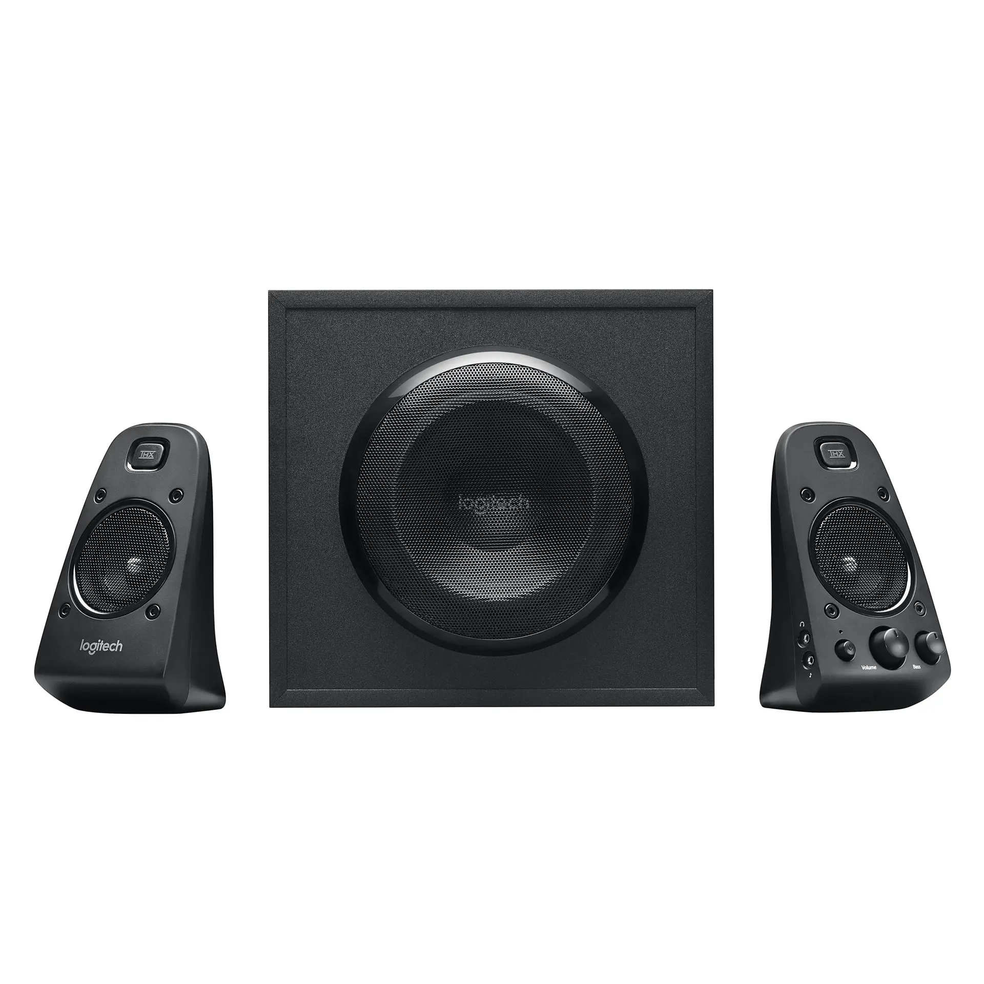 Logitech® Speaker System Z623. For big, bold, 2.1 sound. THX® Certified means quality you can count on-these speakers have met strict performance standards to achieve THX certification. You'll hear-and feel-immersive audio from 200 watts (RMS) of power that brings music, movies, and games to life. Multiple inputs-and a built-in headphone jack-make it easy to get great sound from up to three audio devices. Easy, two-satellite setup and a powerful subwoofer give you big sound-even in large spaces. And integrated controls put you in command-dial the volume and bass up or down to customize your listening experience.
