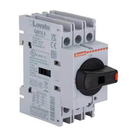 Lovato 3P Pole Isolator Switch - 16A Maximum Current, 11kW Power Rating, IP65 - GA016A