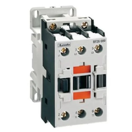 Reliable Lovato 3-pole contactor with 24V DC coil and 26A capacity for efficient electrical control.
