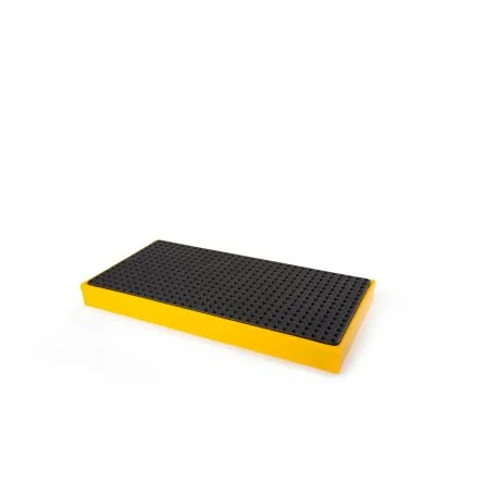 Prestige, top quality 2-drum polyethylene workfloor Fully sealed, moulded bund Extra grip plastic grating, holds the drums clear of spillages Plastic grate will hold 2 fully loaded 205 or 209ltr drums Extra tough poly construction will resist knocks and direct impacts Compatible ramp option (part number 31-3004)Versatile modular system Slip resistant removable platform Safe working load capacity - 1350Kg