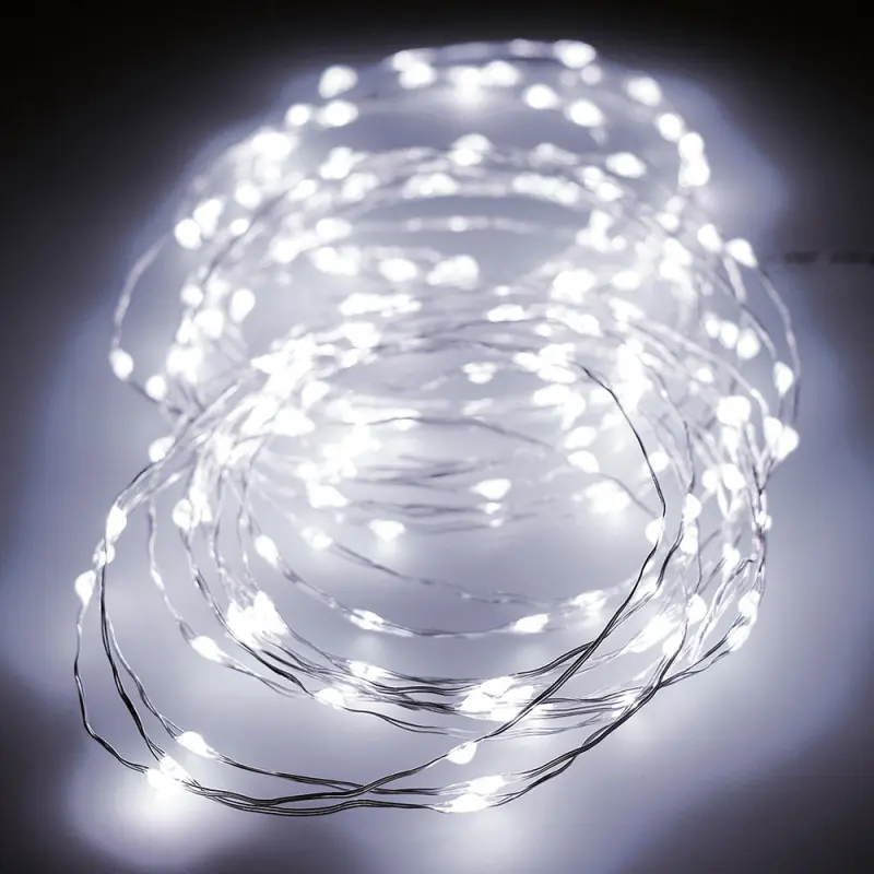 Illuminate your space with this 14m micro LED garland featuring 180 cold lights and 8 light functions.