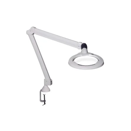 Luxo LED Magnifier LampThe Luxo Circus LED magnifier lamp has a maximum reach of 1143mm and is of table clamp mount magnifier type. It has a large lens, aluminium head and a highly flexible self-balancing arm and shade neck. The large lens also permits comfortable viewing for individuals with impaired vision. This magnifier includes a circular LED module, which virtually eliminates shadows and provides colour rendering.Features and Benefits5 dioptre magnification Exact positioning Highly flexible, self-balancing lamp head, allowing it to be positioned vertically, horizontally and laterally Illuminated magnifiers Power rating is 10W Voltage rating is 50V Lens diameter is 165.1mm Plug type is type C - European plug, type G - British 3-pinApplicationsCleanroom Cosmetology Industrial applications Manufacturing