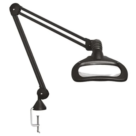 Luxo LED Magnifier LampThe Luxo LED magnifier lamp has a maximum reach of 1050mm and is of table clamp mount magnifier type. It is a professional LED wave magnifier suitable for industrial applications. Its 3D feature is especially welcome when working with circuit boards and similar delicate objects.Features and Benefits3.5 dioptre magnification Aluminium shade Operating voltage rating is 230VAC Power rating is 2 x 6W Lens length of 175mm and width of 108mm Auto shut OFF Cable length is 2m Colour temperature is 4000°K Plug type is type C - European plug, type G - British 3-pin Dimmable 0-50-100% Fitted with a table clamp Flexible spring of 105 cm is used to balance 3 pivot arm with no drift Steel armCertificationsCE certified IP20 rated