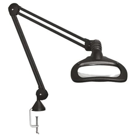 Luxo LED Magnifier LampThe Luxo LED magnifier lamp has a maximum reach of 1050mm and is of table clamp mount magnifier type. It is a professional LED wave magnifier suitable for industrial applications. Its 3D feature is especially welcome when working with circuit boards and similar delicate objects.Features and Benefits5 dioptre magnification Aluminium shade Operating voltage rating is 230VAC Power rating is 2 x 6W Lens length of 175mm and width of 108mm Auto shut OFF Cable length is 2m Colour temperature is 4000°K Plug type is type C - European plug, type G - British 3-pin Dimmable 0-50-100% Fitted with a table clamp Flexible spring of 105 cm is used to balance 3 pivot arm with no drift Steel armCertificationsCE certified IP20 rated