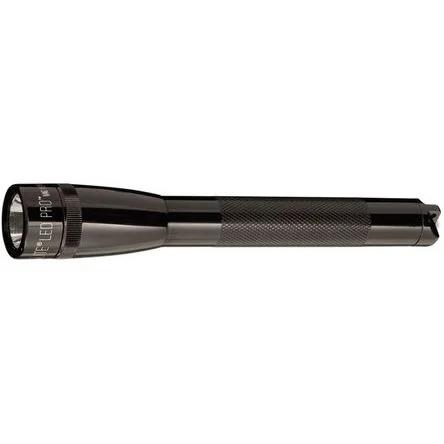 2 x AA Duracell alkaline batteries. AA Mini Mag-Lite® LED Pro Torch. The Mini Mag-Lite AA Pro LED torch utilises the next generation MAG-LED technology to boast an incredible level of performace from a pen-like form. This compact torch features balanced optics and the LED light provides 272 Lumens powered by just 2 AA batteries. Turn the torch head to switch on and off and twist to focus. The torch head can also be removed for candle-like flood operation. Light Output - 272 Lumens (6613 candela) Beam range 163 meters Run time 2.30 hours on high Weather resistant Impact resistant to 1 meter Precision engineered aircraft aluminium casing Anodised inside and out for improved corrosion resistance ; 885-0812 885-0812 (SP2P017)is supplied in a presentation box ; 899-8422 899-8422 (SP2P01H) is supplied in a blister pack with a black polypropylene belt holster