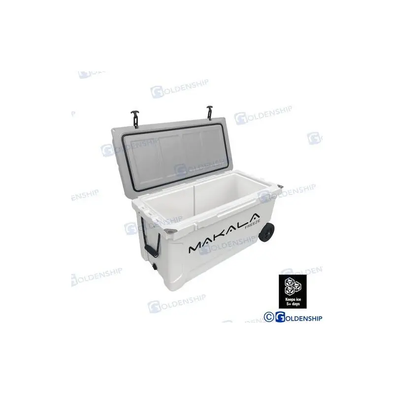 The Makala 65L Cooler features wheels for easy transport, perfect for outdoor activities.
