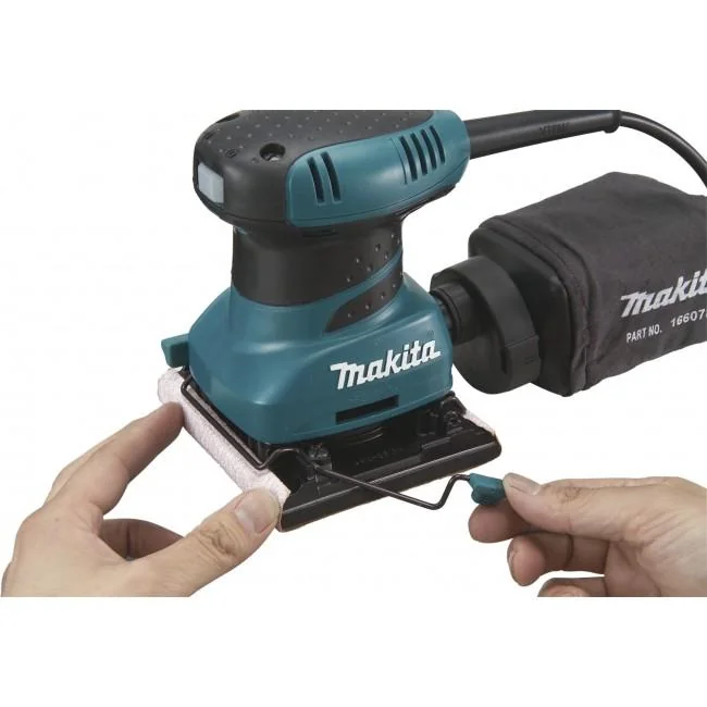 The Makita 200W Vibrating Sander (Model BO3710) is a compact and lightweight tool designed for efficient sanding in tight spaces. Its ergonomic design and low vibration levels ensure comfortable operation during extended use.