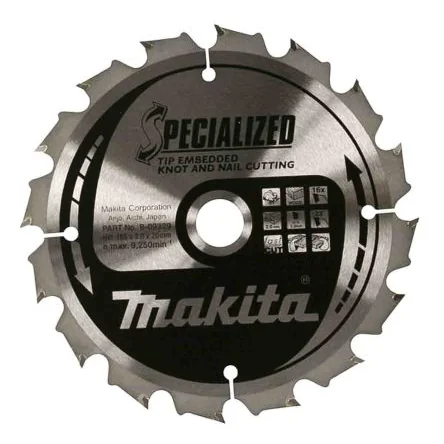 Designed to fit both Makita and other manufacturer’s saws, tip embedded or “;Deep Tooth”; blades are especially tough and hard wearing. Easily copes with knotty wood and will normally slice through nail and screw embedded timber without damaging teeth. Especially suitable for reclaimed timber and demolition work. FOR SANDWICH PANEL FOR CONSTRUCTION.Nail and Knot Cutting. Extremely tough and hard wearing. Extended service life and productivity. OR METAL CUTTING FOR MDF