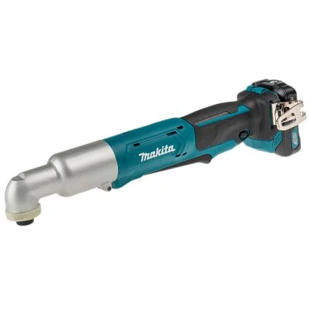 Makita Cordless Impact WrenchThe Makita cordless impact wrench is a cordless impact driver powered by 10.8V Li-ion battery. The powerful motor generates a speed of 2000rpm featuring an electric brake. The angle impact driver has a compact, angled head for easy access in confined spaces, made from aluminium for added durability, rotatable up to 360 degrees. It has a conveniently located large paddle switch and a phosphorescent bumper for locating the tool in dark work areas.Features and Benefits• Aluminium angle head • Carry case • Electric brake • Ergonomically designed handle • Forward/reverse rotation • Large switch lever • LED job light • Phosphorescent bumper • Variable speedApplications• Fastening application • Tightening application