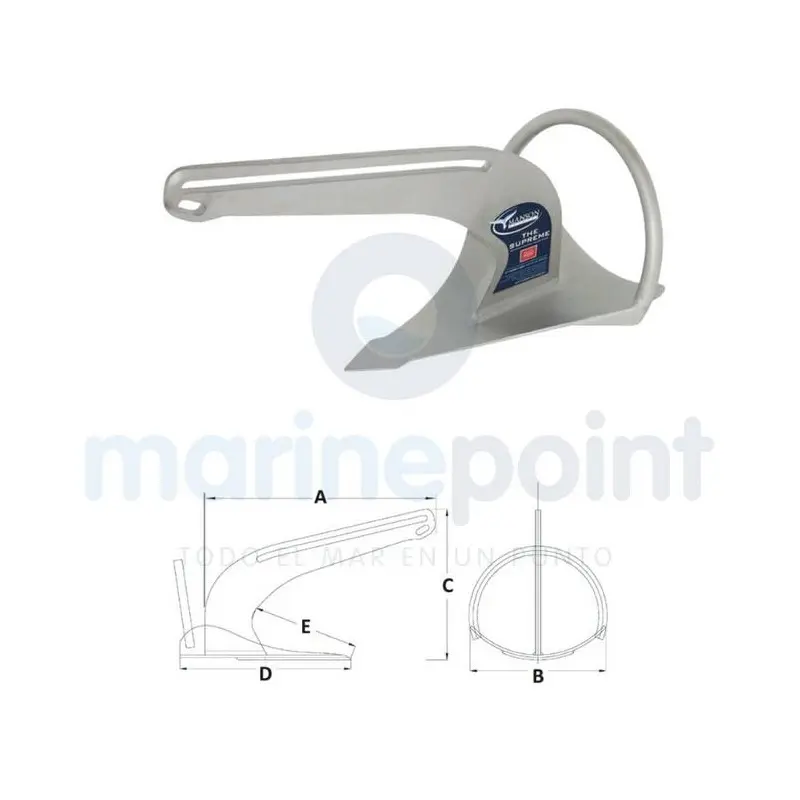 The galvanized 56 kg Manson Supreme anchor is the benchmark among next-generation anchors for large vessels. Its plug-type design provides immediate and stable grip on a wide variety of seabeds: sand, mud, and gravel.