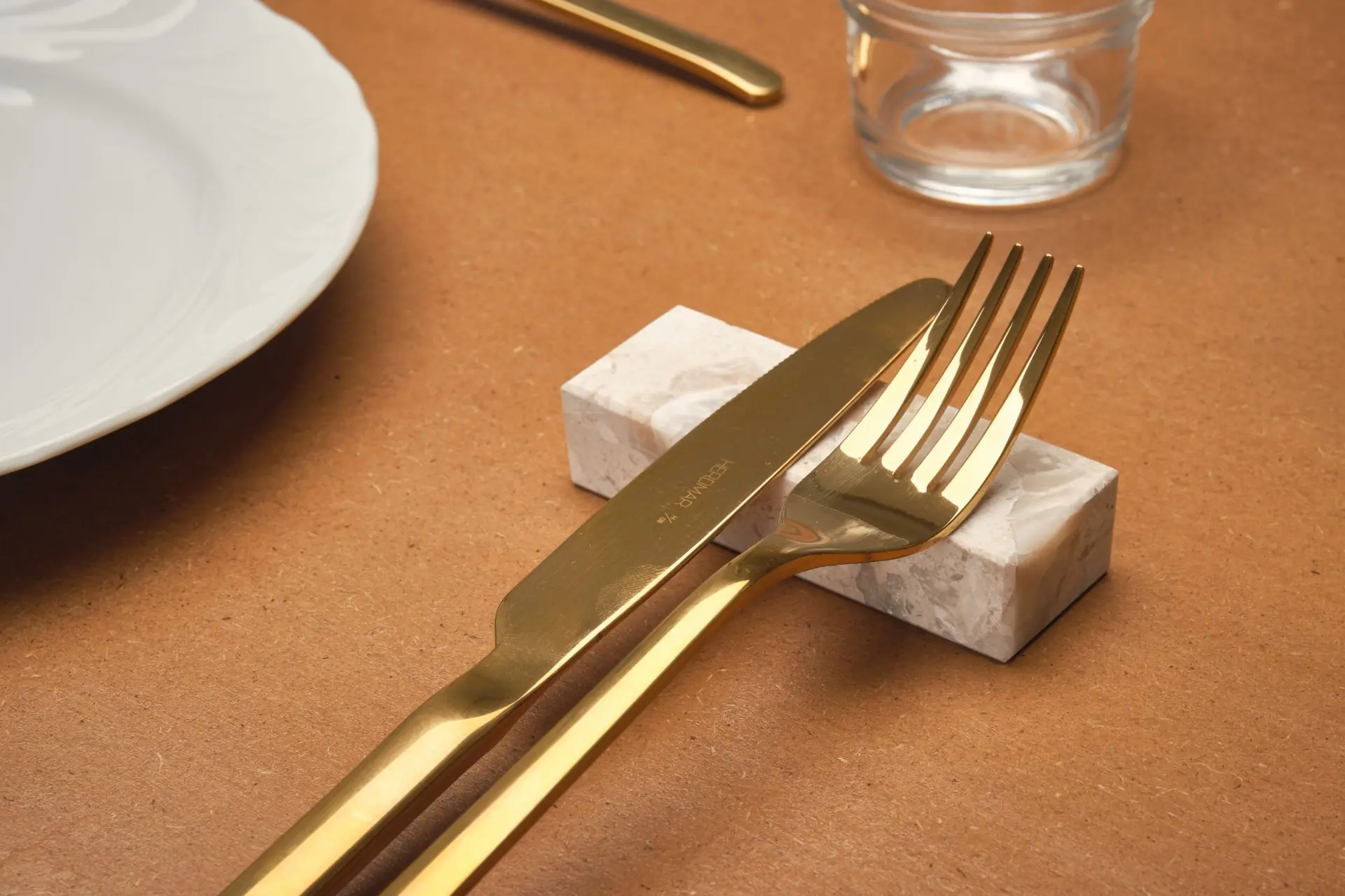 Discover the unique personality of Albaperla marble with these elegant cutlery rests.