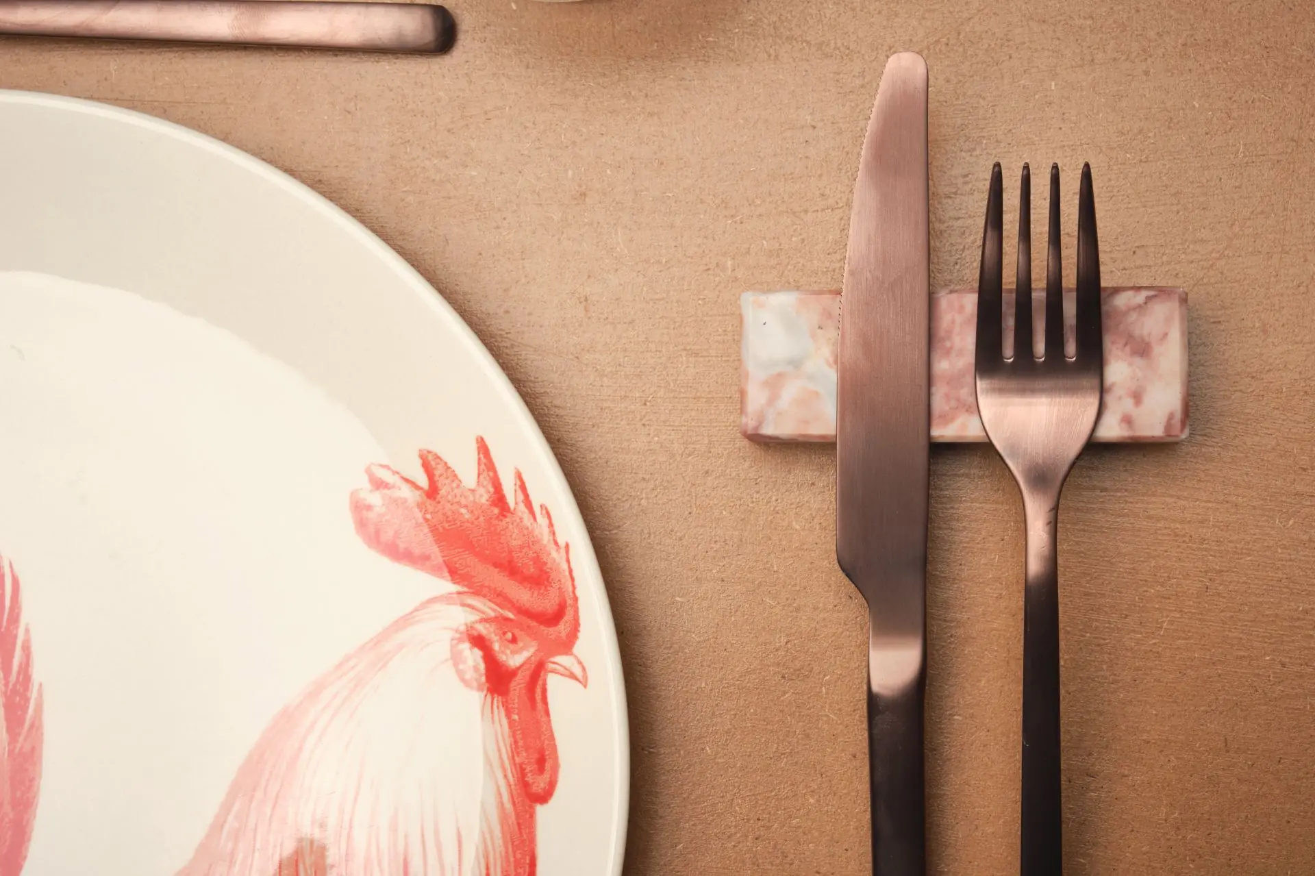 These Rosalba marble cutlery rests showcase beautiful color nuances in pink, white, and yellow, measuring 8.5x3x2 cm.
