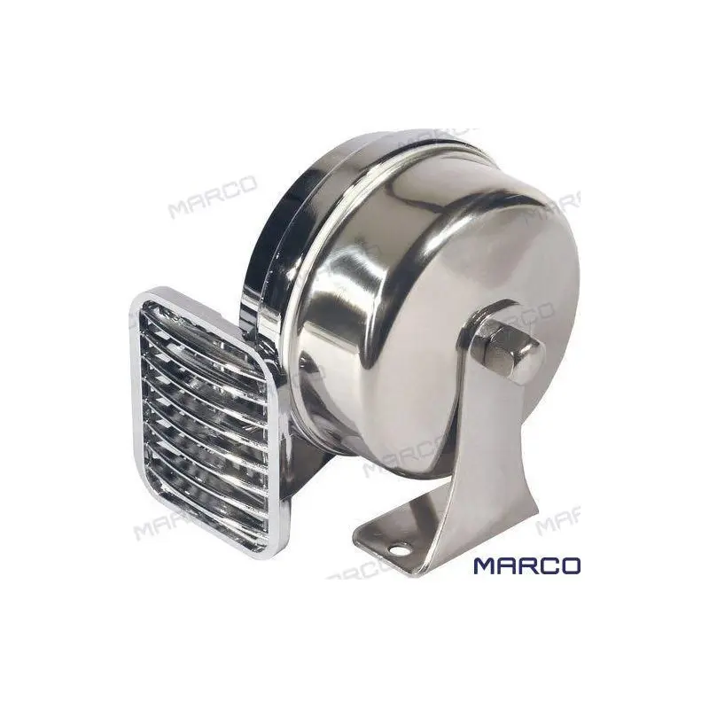 The Marco simple 12V electric horn is an indispensable accessory for any vessel requiring a powerful and reliable acoustic signal. Its manufacture with high-quality materials guarantees performance and longevity.