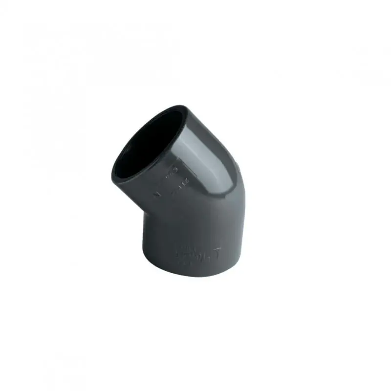 45-degree socket elbow MAREVA D63 - FF with female inlet and outlet, it is ideal for your pool plumbing work. Indeed, this elbow will allow you to make connections on two pipes with a diameter of 63 mm. Moreover, it is resistant to corrosive products and limescale.Thus, you can avoid potential leaks between the connections of the different tubes.