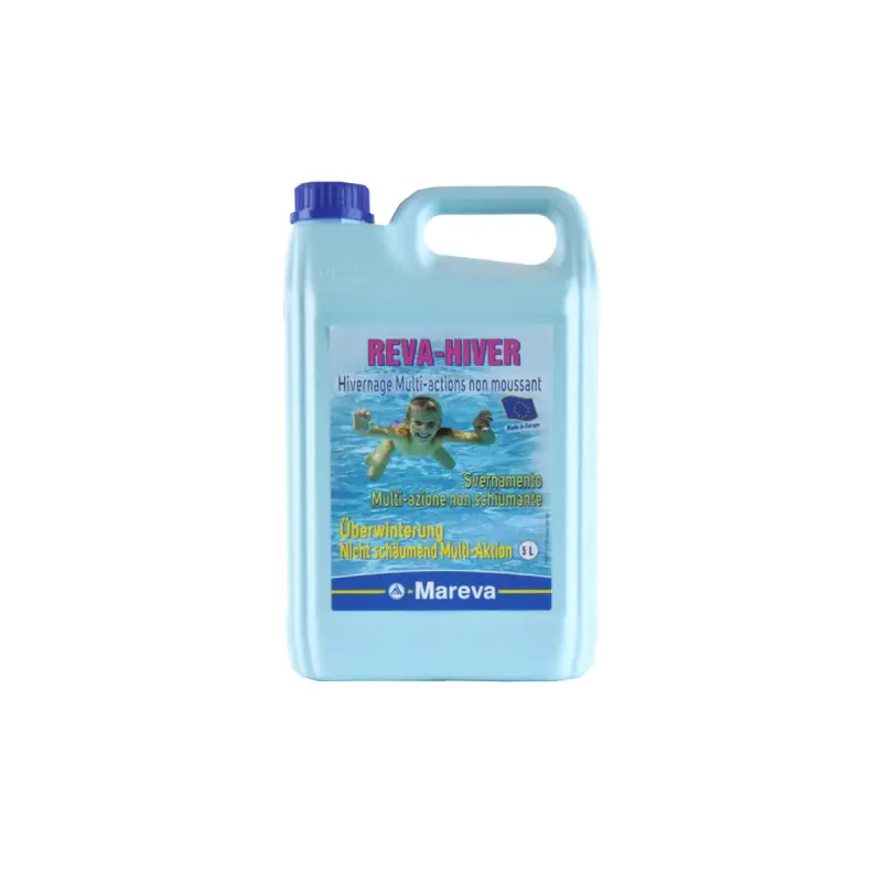 MAREVA Algicide Revatop 12 % - 5 L - Bactericide Revacil - 5 L - Winterising Product - 5 L is the ideal pack to preserve the water in your pool as well as all your equipment during the winter! For the Revacil treatment, carry out a routine treatment with the shock clarifier composed of active oxygenalgicide Revatop+ 12 % - 5 L and readjust the Revacil level with Bactericide Revacil+ - 5 L for disinfected and clear water. Then addwinterising multi-action product - 5 Ldirectly into the pool in front of the return inlets and let the filtration run for at least 4 hours. This will keep your pool clean and healthy during the winter, allowing you to enjoy it as soon as the nice days arrive.