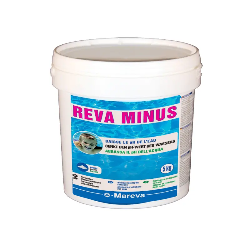 With theMAREVA Reva-Minus pH Reducer - 5kg - 150004 you will have the suitable solution to lower the pH of your pool water. This product helps prevent it from being not acidic enough. A balanced pH is all the more important as it allows other maintenance products to be truly effective. If the pH of your pool is high, it harms the effectiveness of other maintenance products and will make your water cloudy in addition to causing scale. It is therefore important to check this parameter and use the reducer in case of too low a result.
