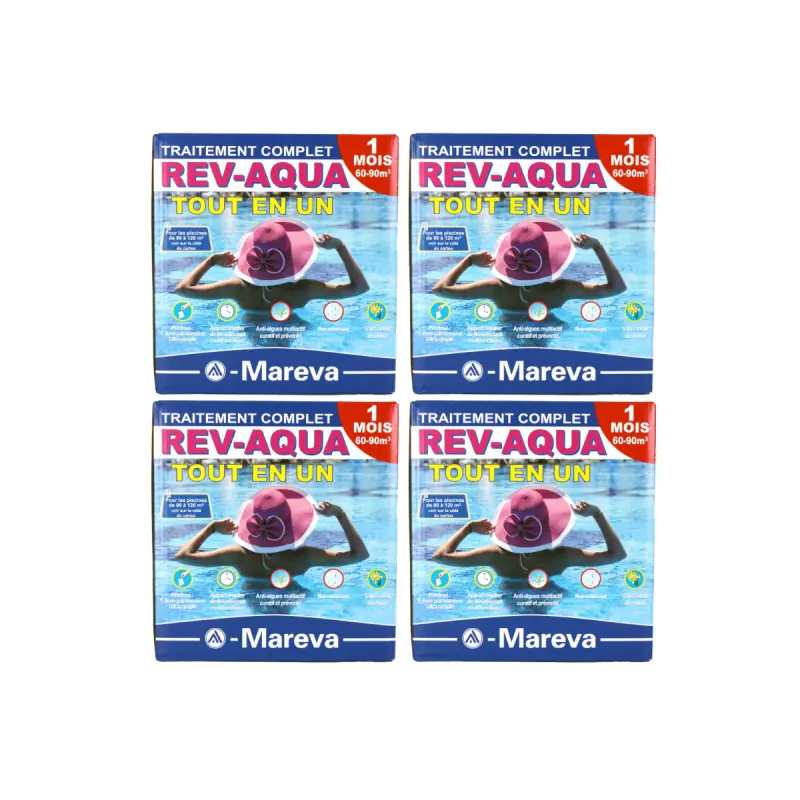 Pack of 4 Rev-Aqua MAREVA complete treatment kits for pools of 60 to 90 m3 - 2 months