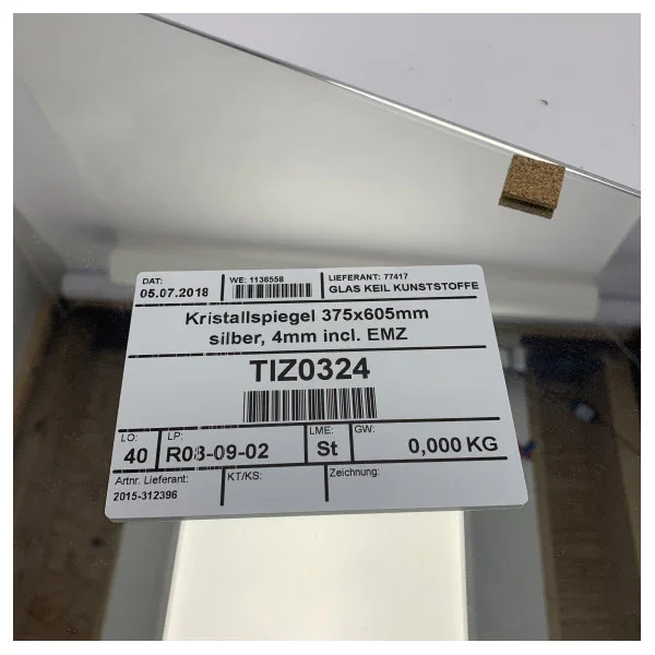 Crystal mirror 375x605mm silver 4mm including EMZ coating. This marine mirror is made from high-quality 4 mm thick crystal glass and features a silver-coloured reflective layer. Thanks to the EMZ coating, the mirror is extra protected against moisture and corrosion, making the product ideal for use in marine environments or damp areas on board. The dimensions of 375 by 605 millimetres provide a practical and versatile application, whether for nautical interiors or technical spaces. This product offers a durable and clear reflection with a sleek finish and is easy to install thanks to the already attached protective corners.