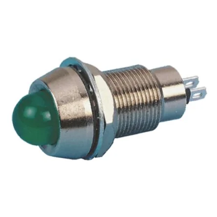 LED Indicator, 12.7mm Mount, 12/24Vdc, 514 Series. 10mm coloured diffused domed lens IP67 rated 17mm bright nickel plated brass housing Full internal encapsulation Shock and vibration resistant 0.11in. (2.8x0.5mm) terminals