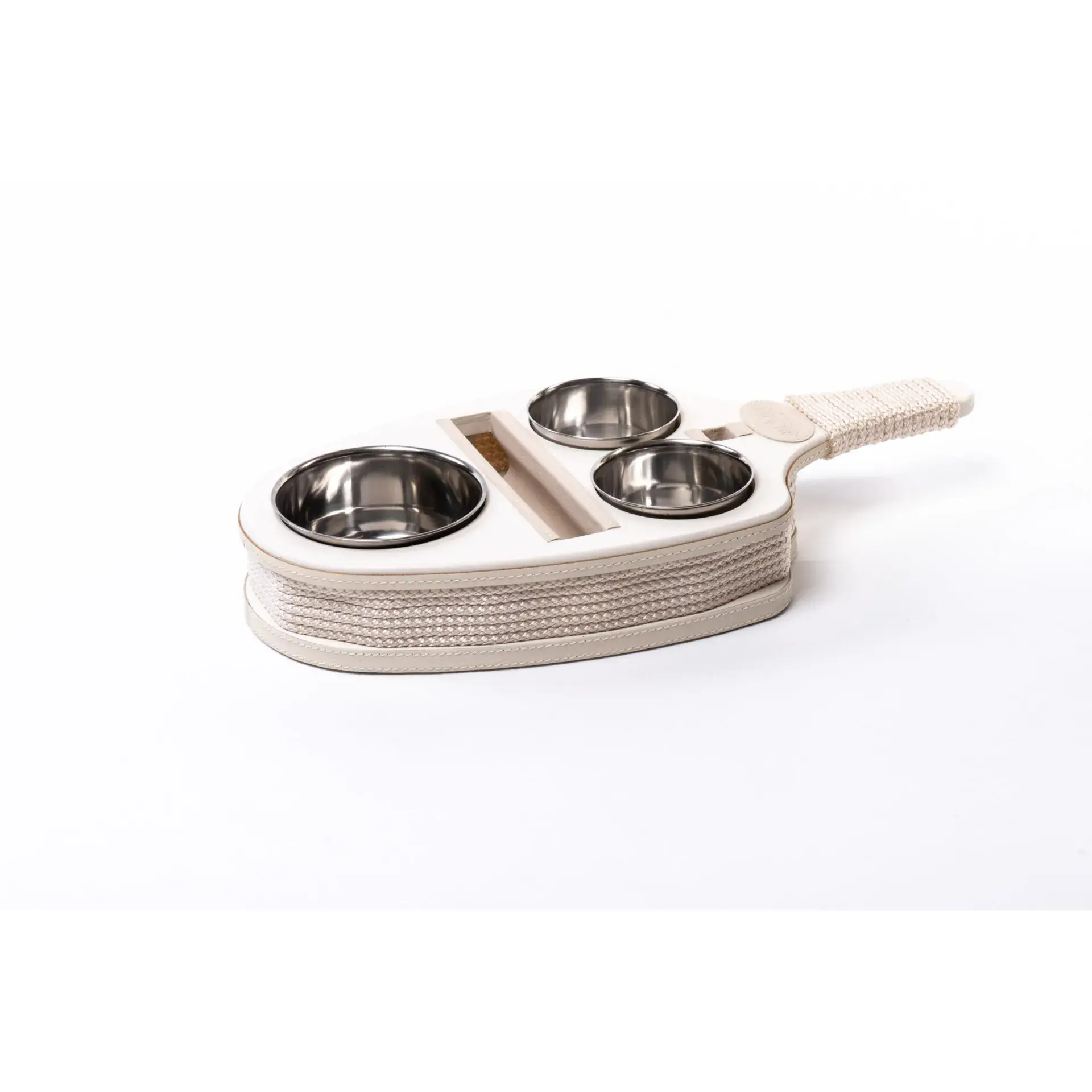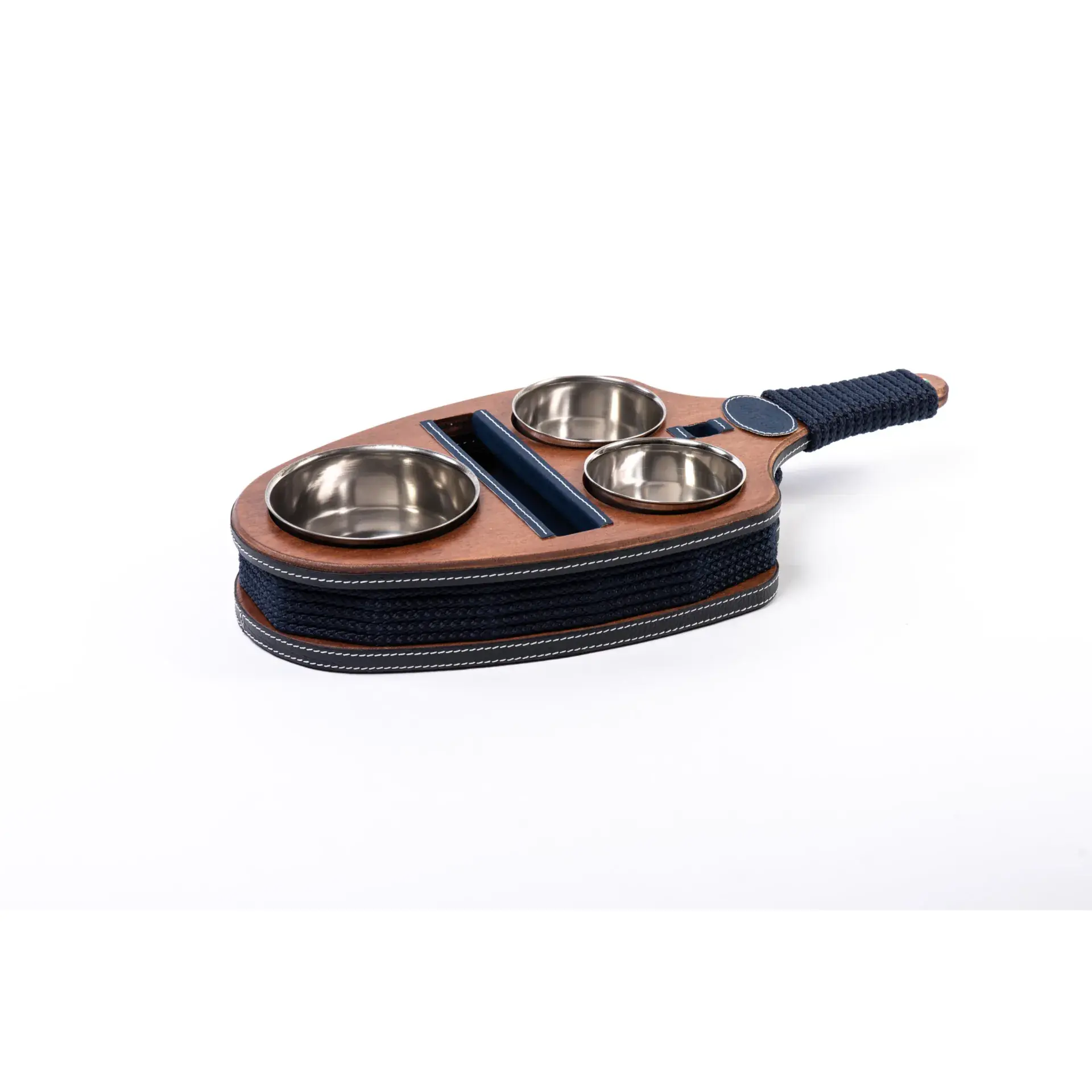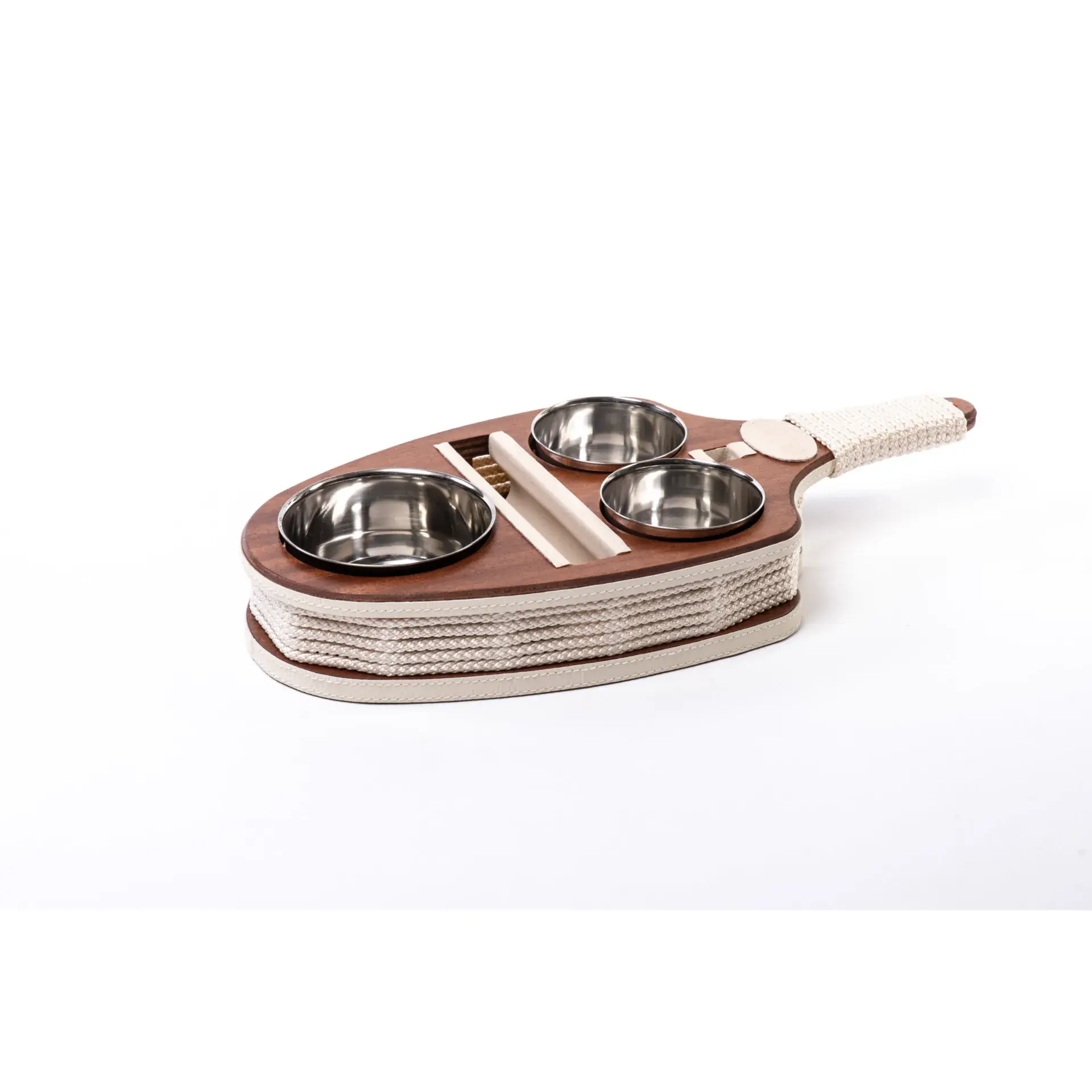 Snack tray – Wooden coated and locked steel bowls, a stable solution for serving snacks
