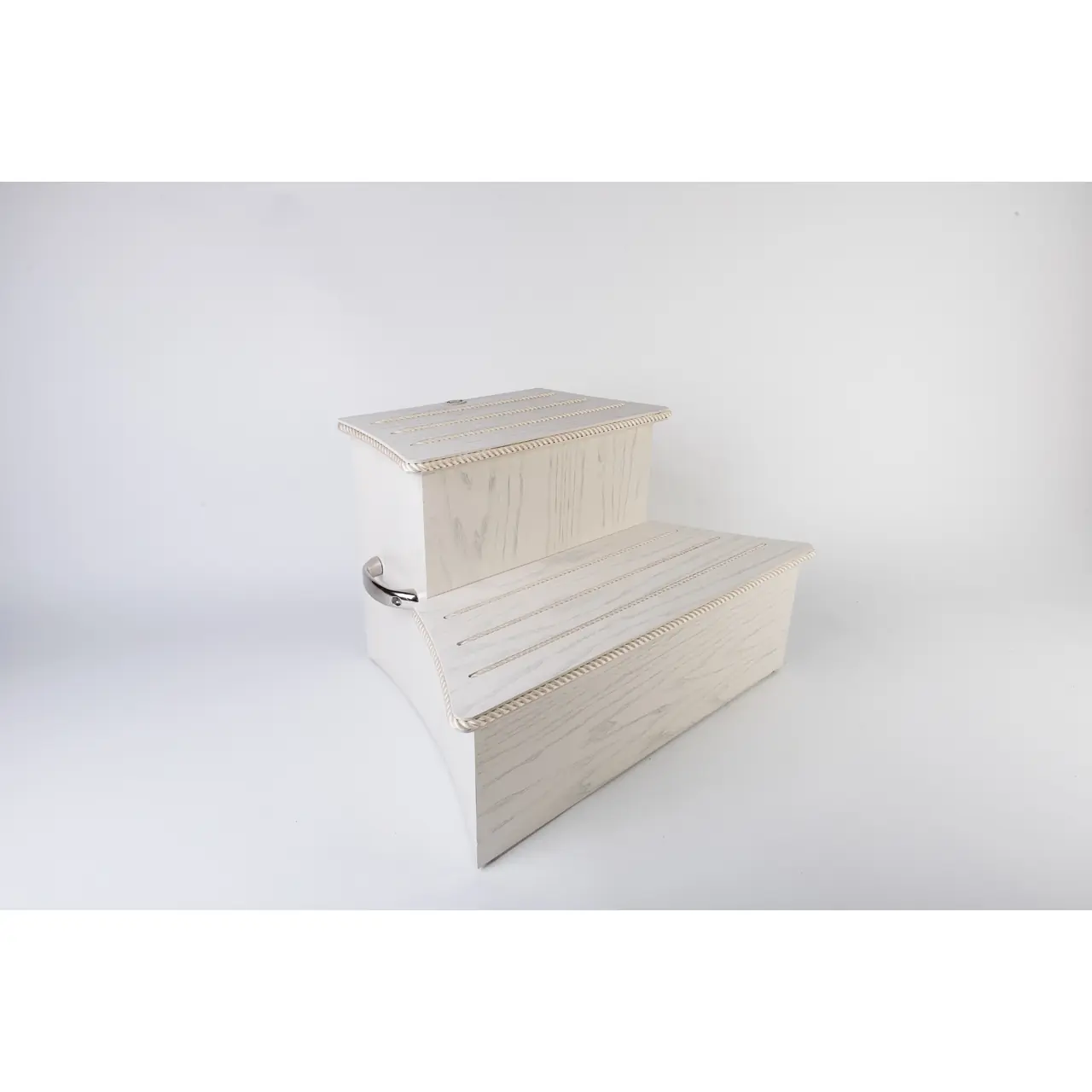 Dock steps – climbing stairs – 2 steps – Product covered, in wood and steel. A unique and elegant design. Curved walls, soft close of the steps and each step is non-slip and has space to store shoes and/or other items. Water-resistant and UV ray resistant.