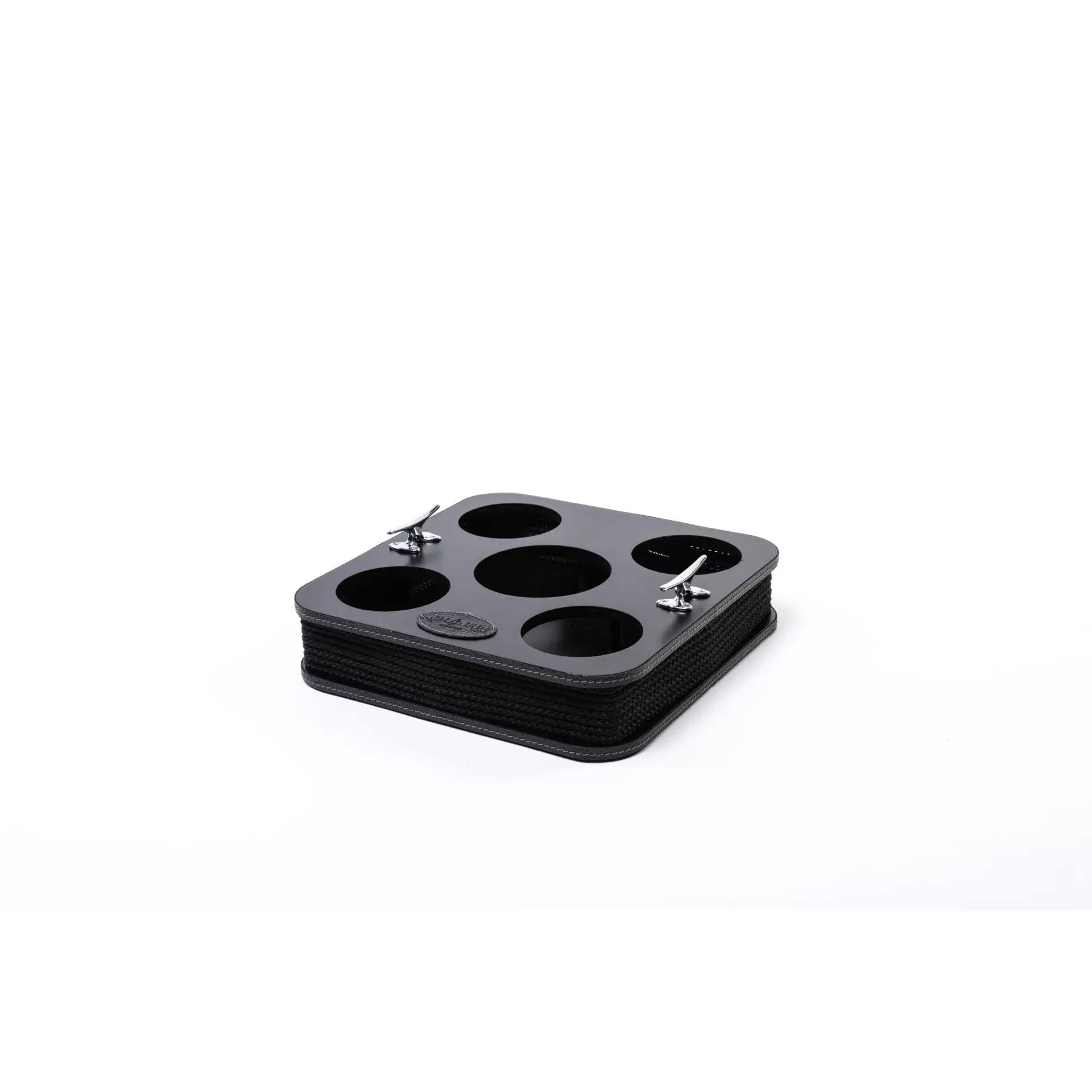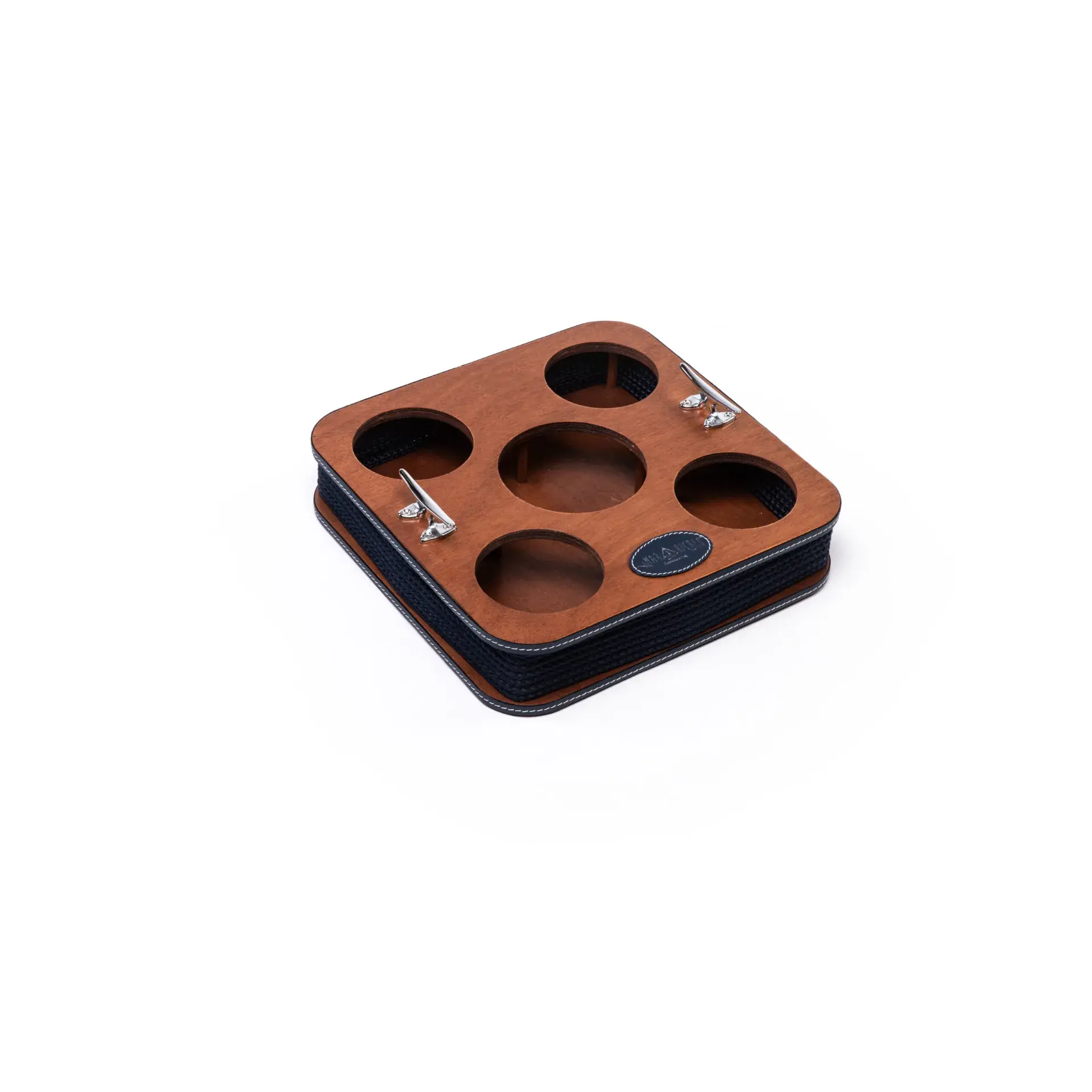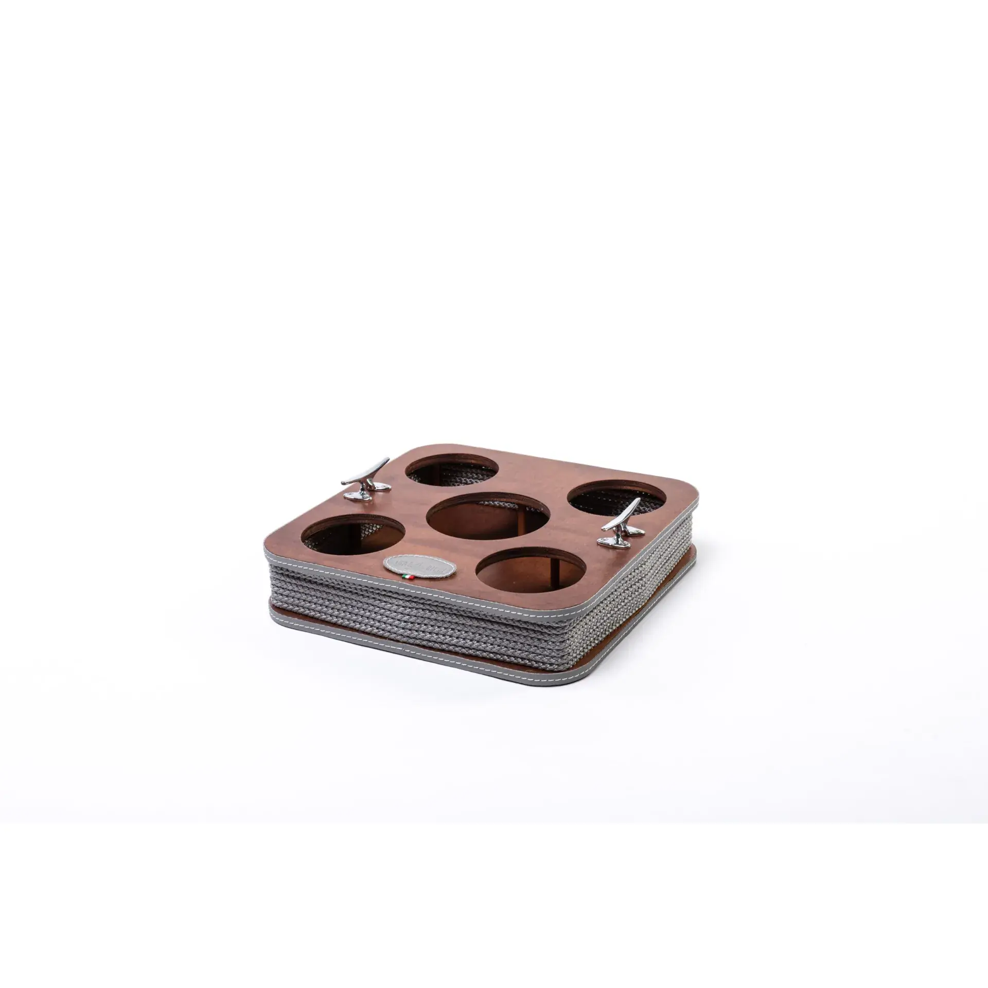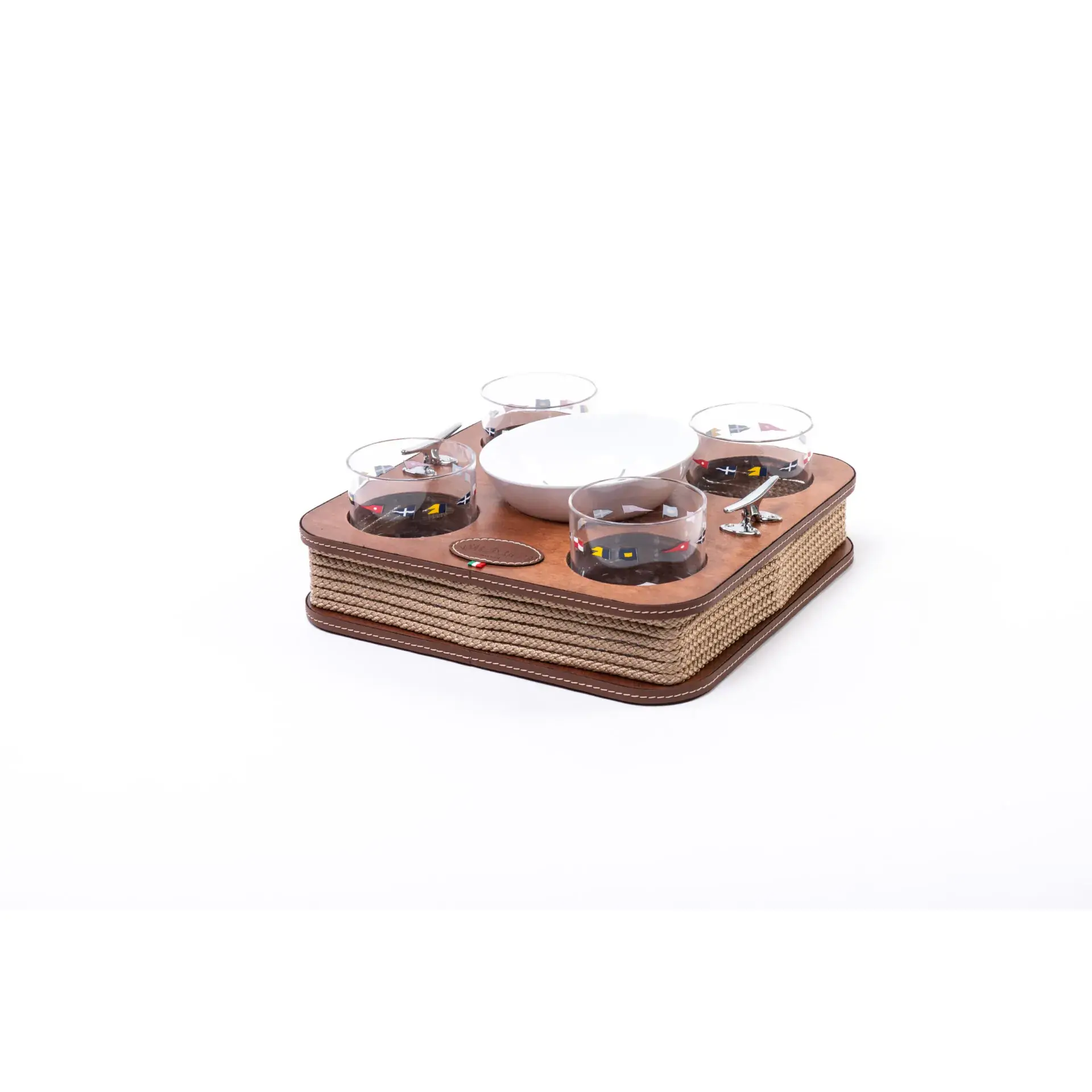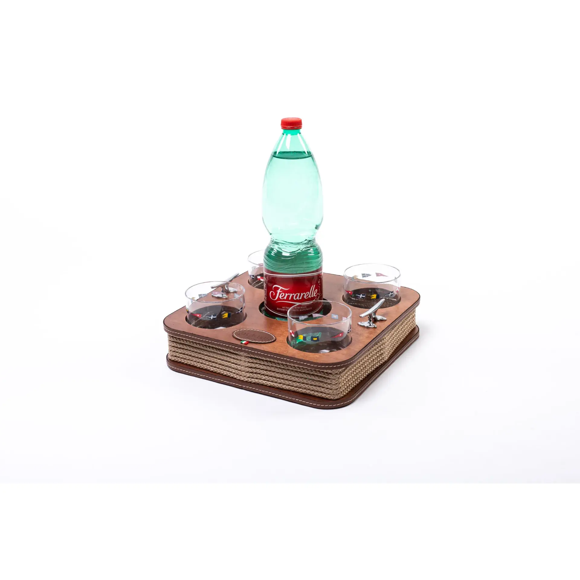 Glass/bottle/appetiser tray – Coated product, made of wood. An elegant solution with a double bottom to hold 4 glasses and a bottle, or a tray with snacks.