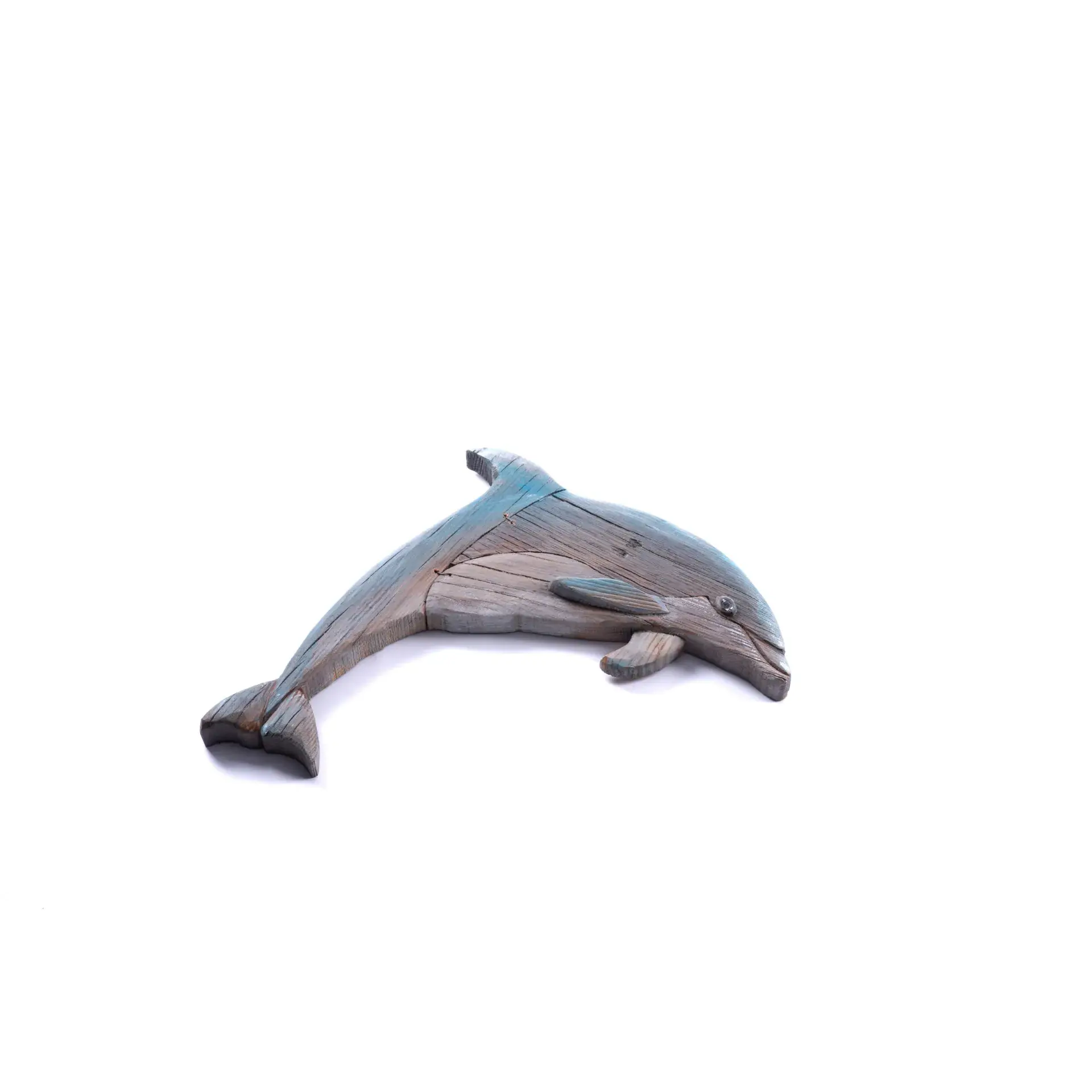 Elevate your space with this handcrafted large driftwood dolphin sculpture, perfect for beach lovers.