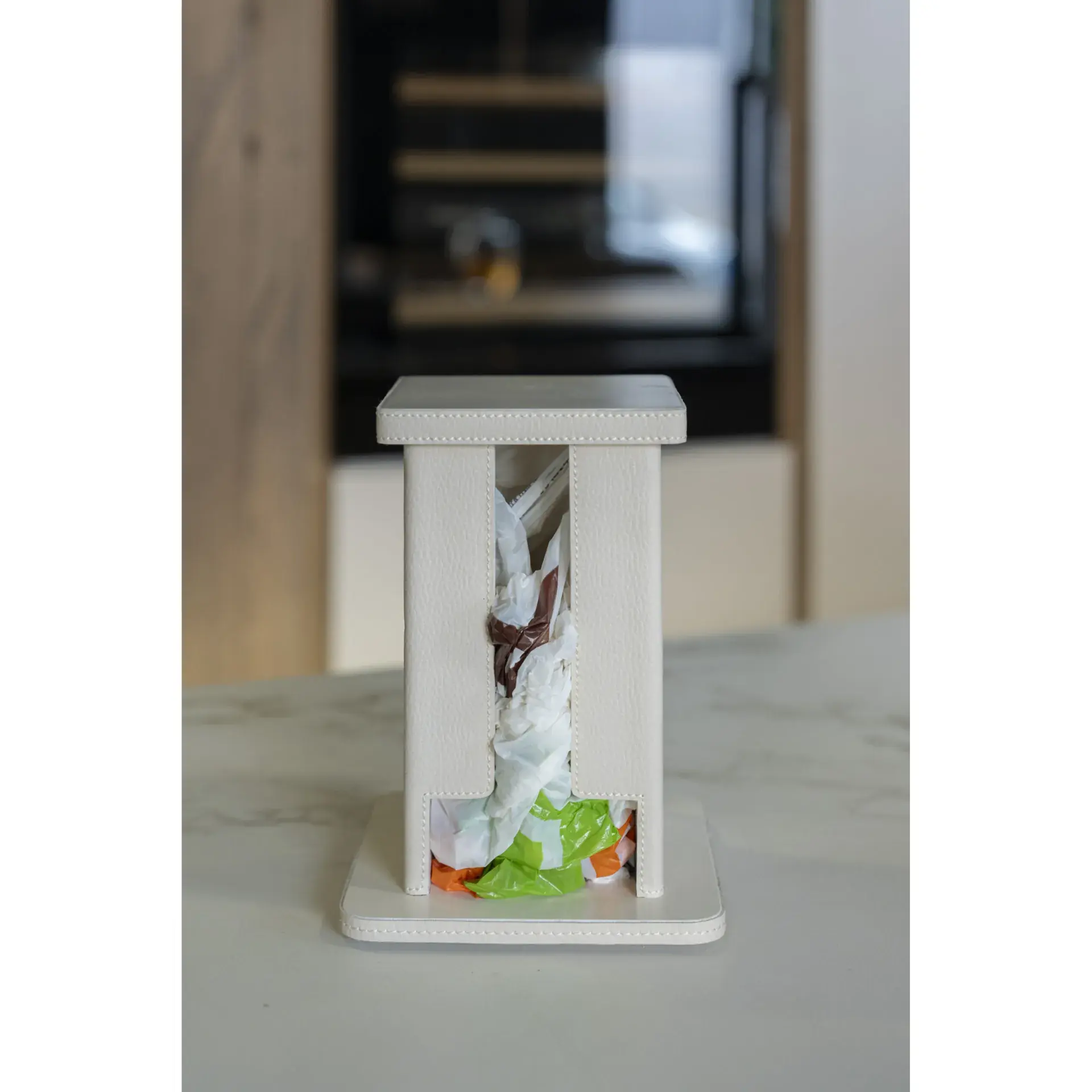 Efficiently organize your plastic bags with this stylish container featuring a durable steel base.