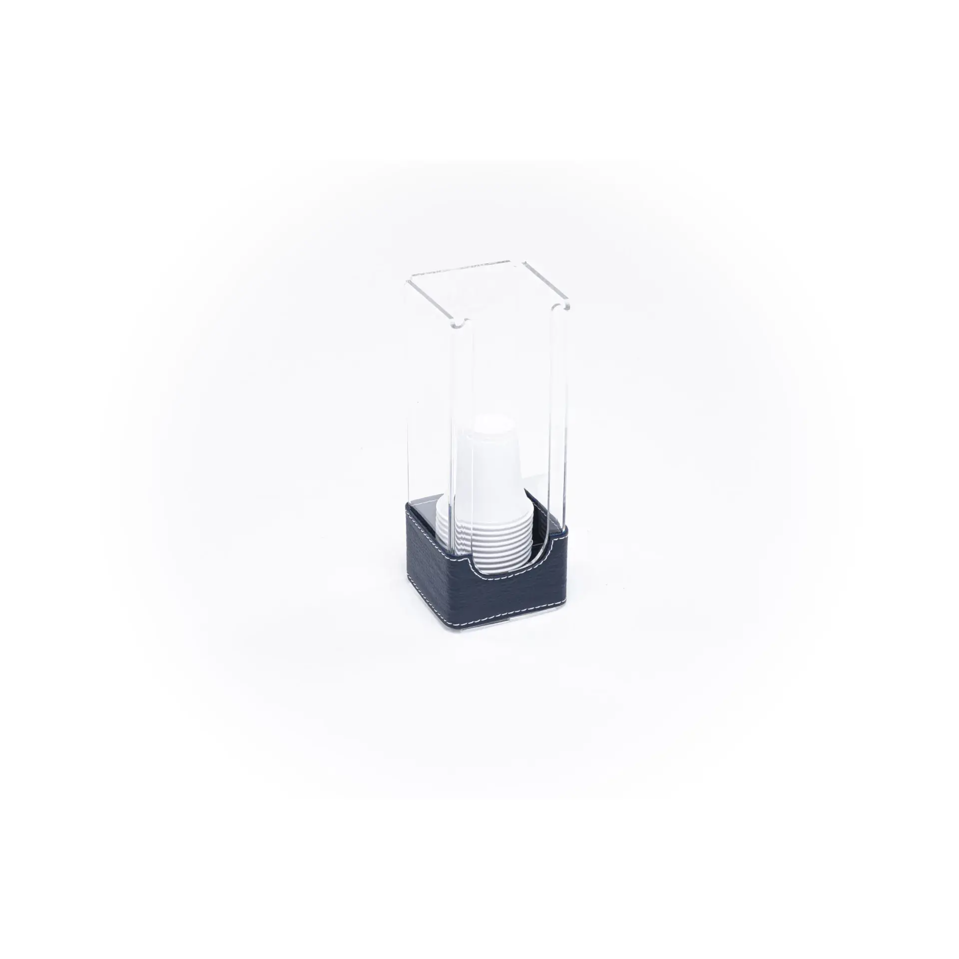 Coffee cup holders – plexiglass – – Made of plexiglass, coated. A beautiful version of a useful object. The decorative knot is movable, giving the object a double version, either in faux leather or faux leather and top.