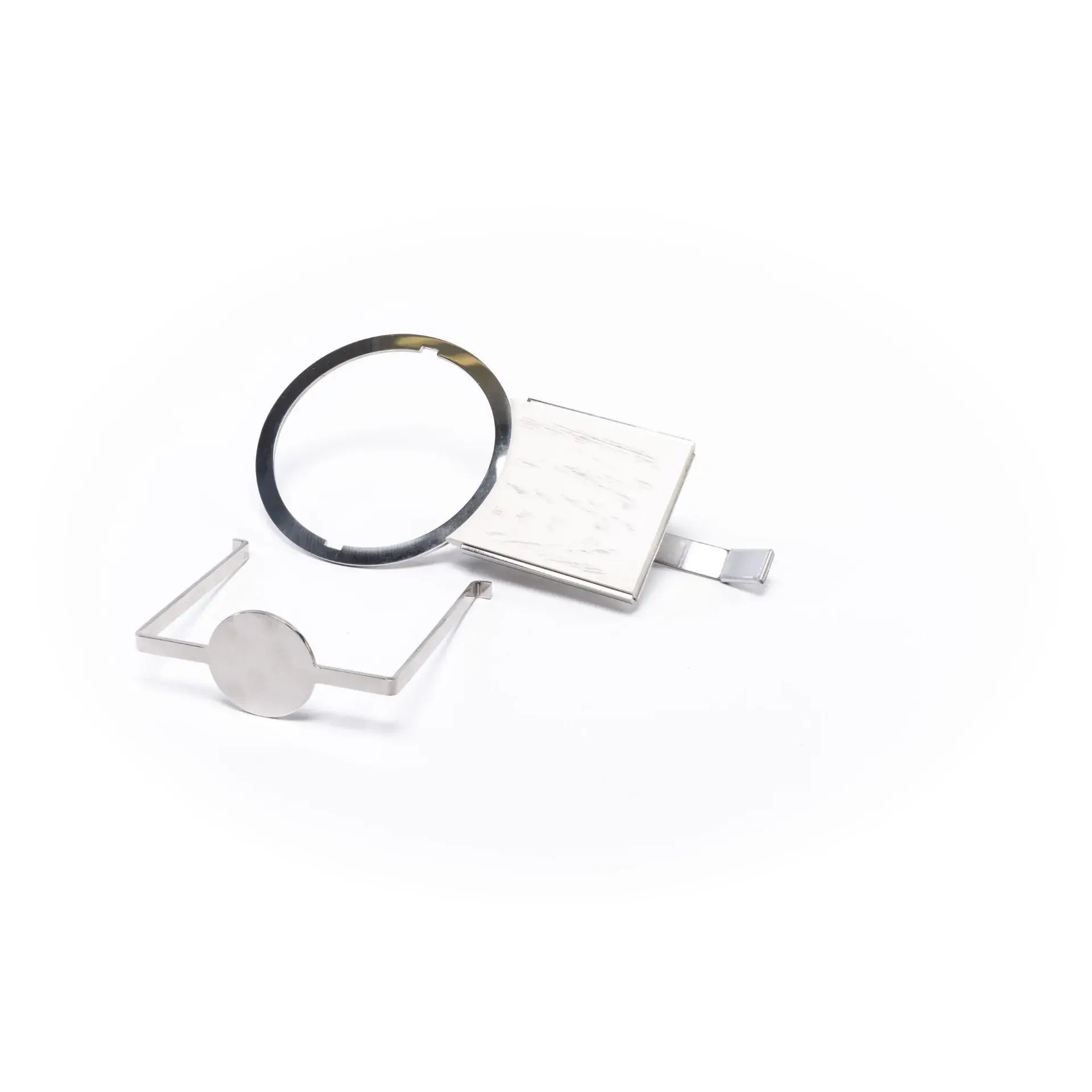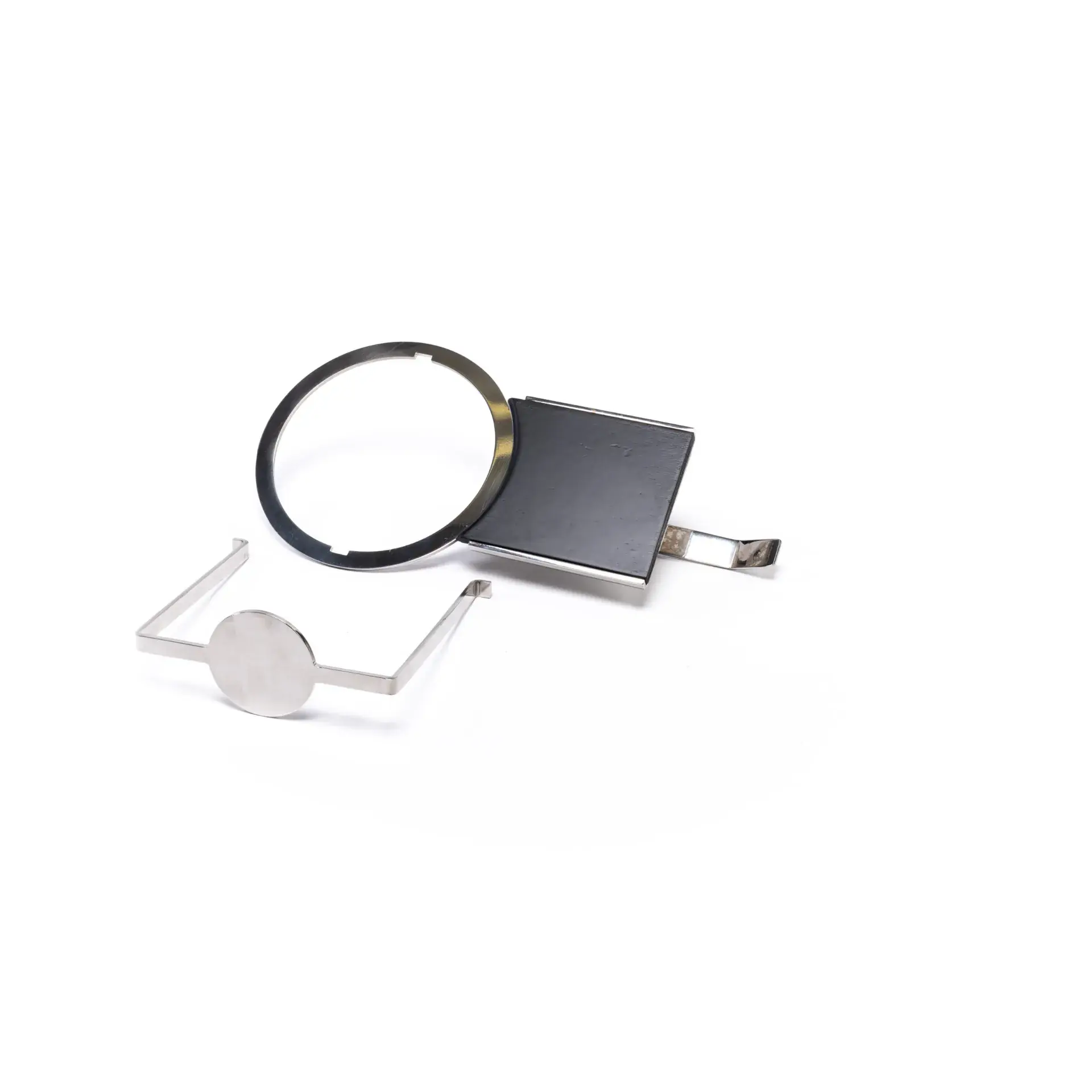 Wine/Ch – Stainless steel wine cooler holder (from 3 to 6 cm) – Made of steel, with a wooden insert. Unique in its kind as a space saver on the table, it attaches to the end of the table. This version is suitable for tables that have a support base height ranging from 3 to 6 cm