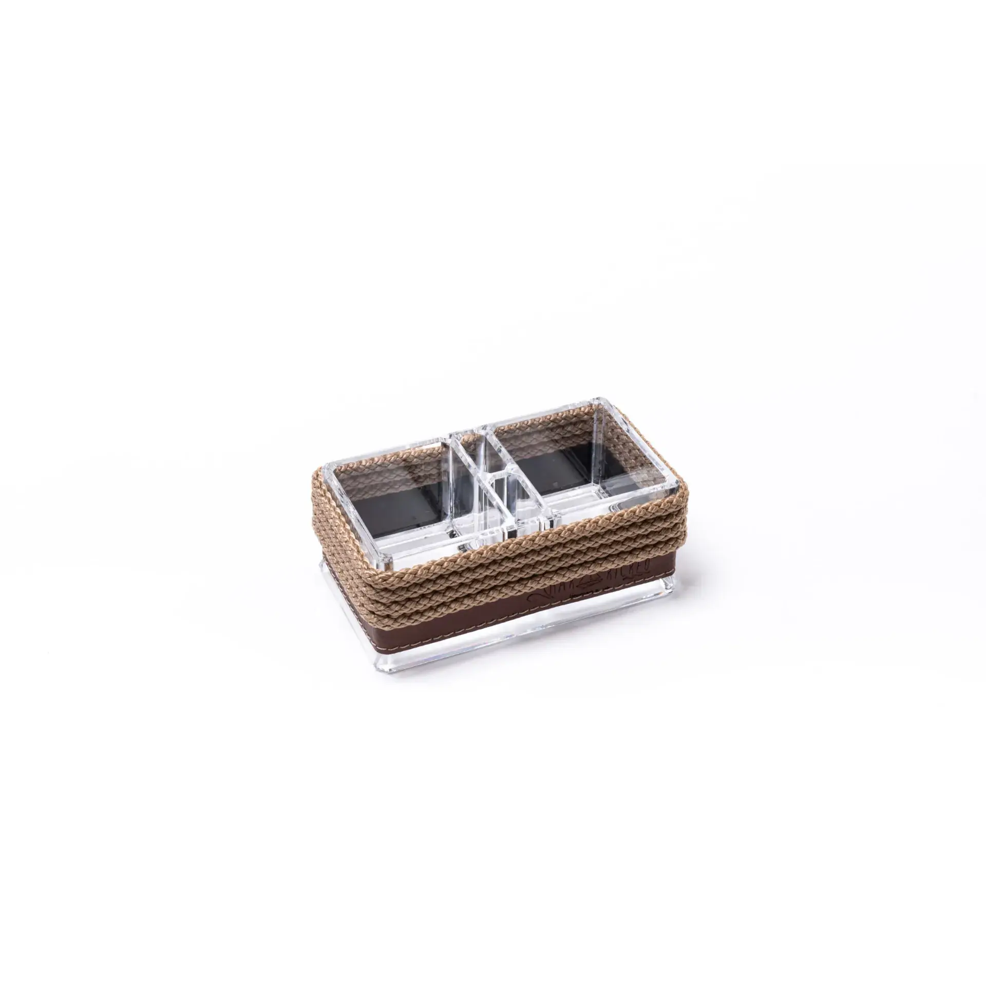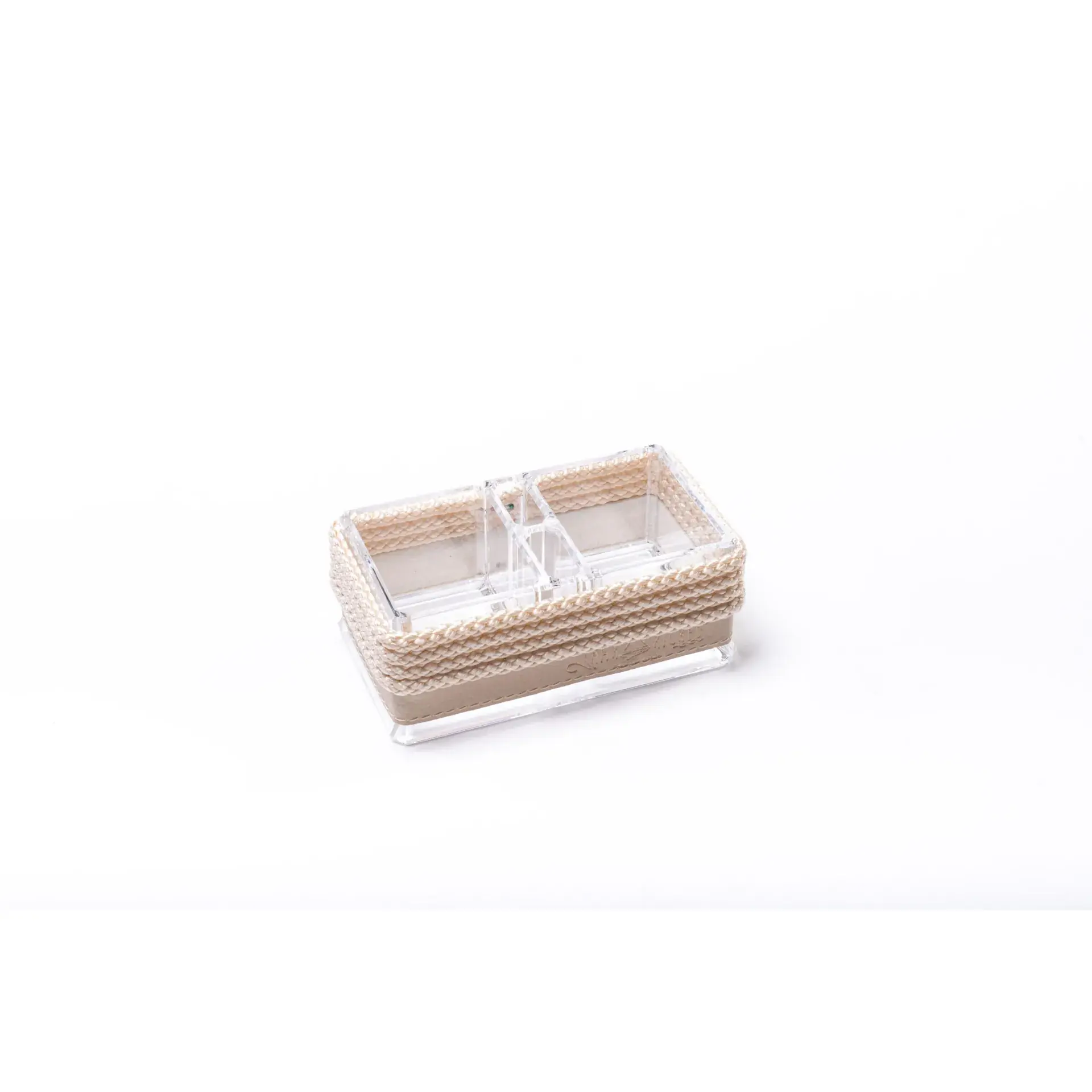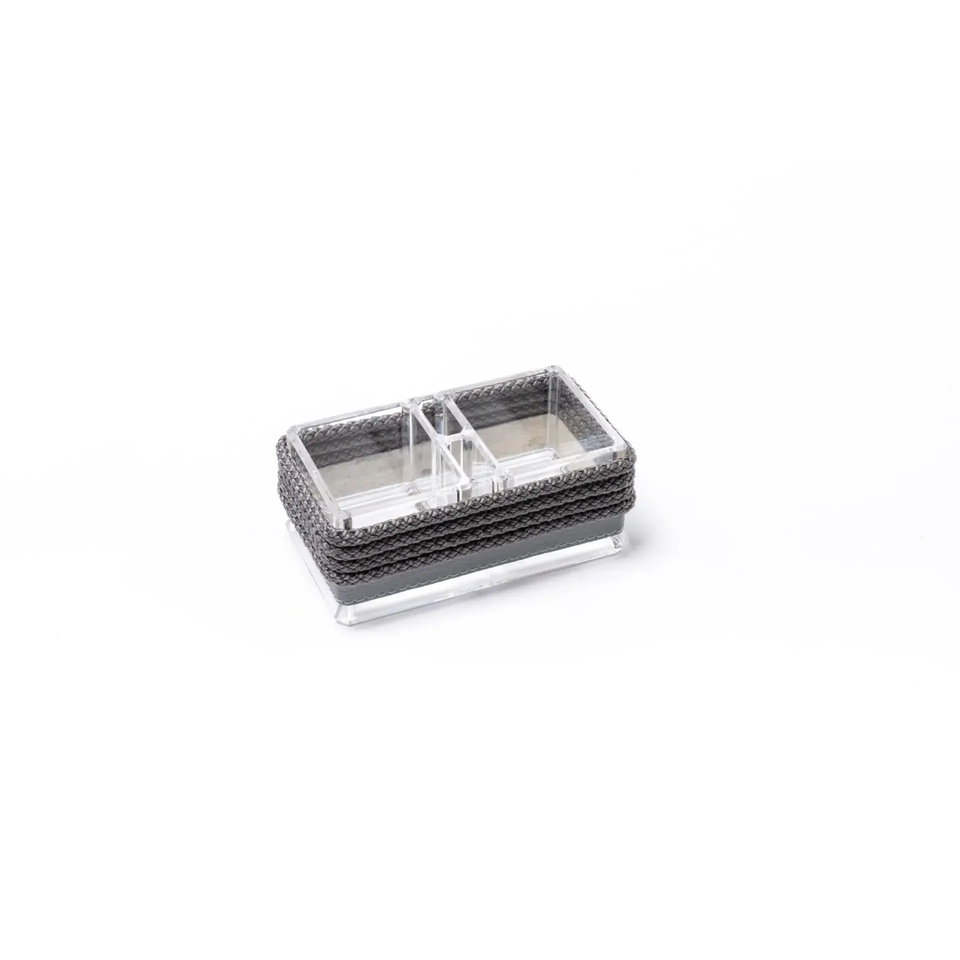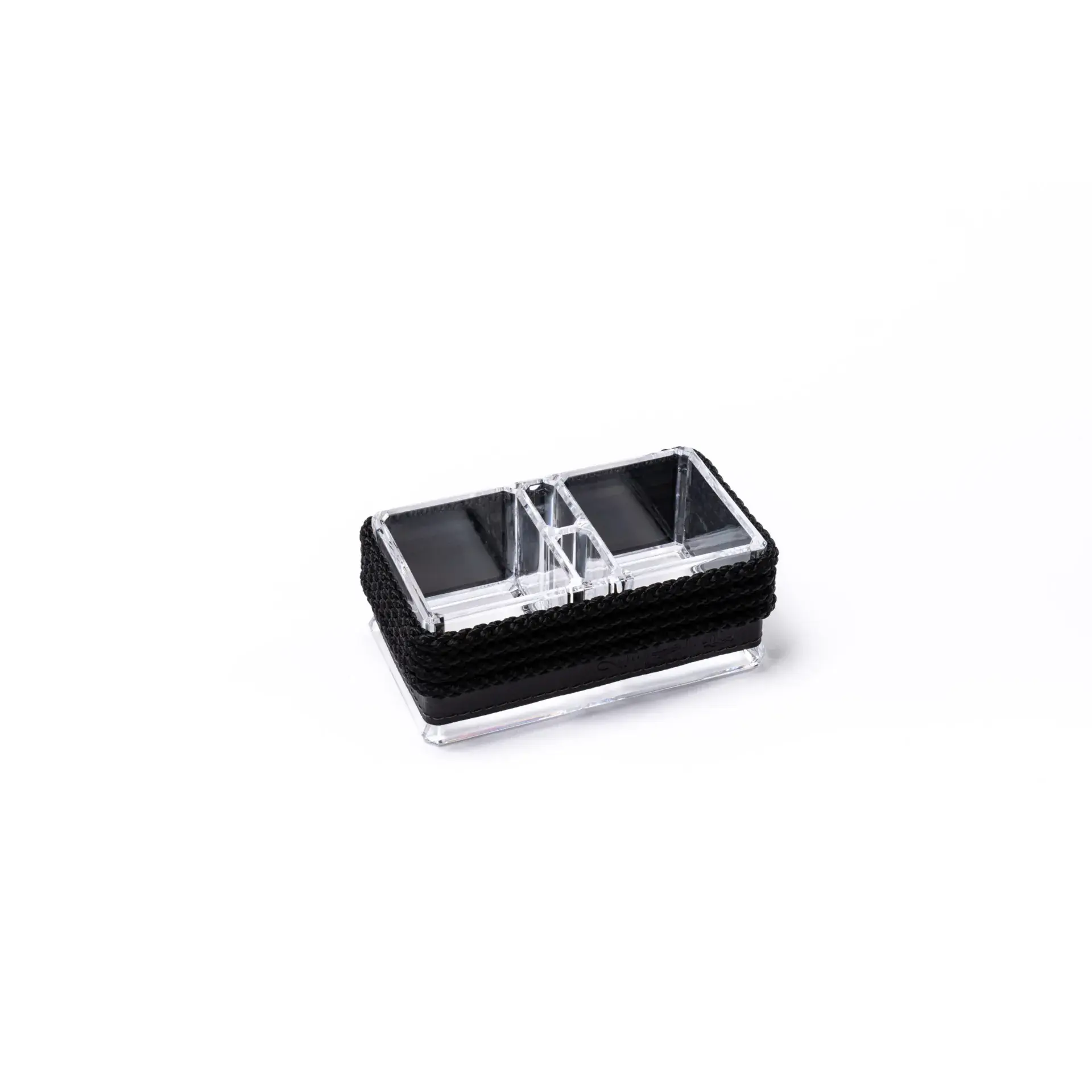 Tea/sugar holder – Coated product, made of plastic with 3 compartments. Ideal for the storage and elegant presentation of tea bags, sugar packets, and stirrers for mixing drinks with sugar.
