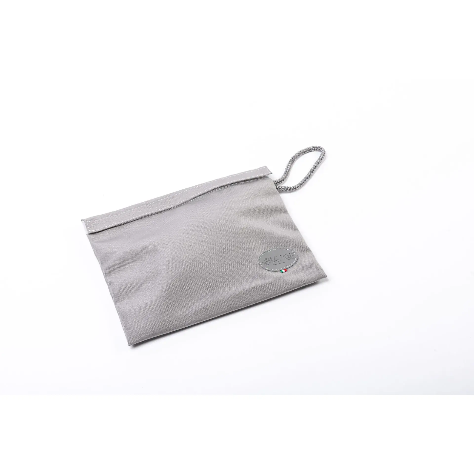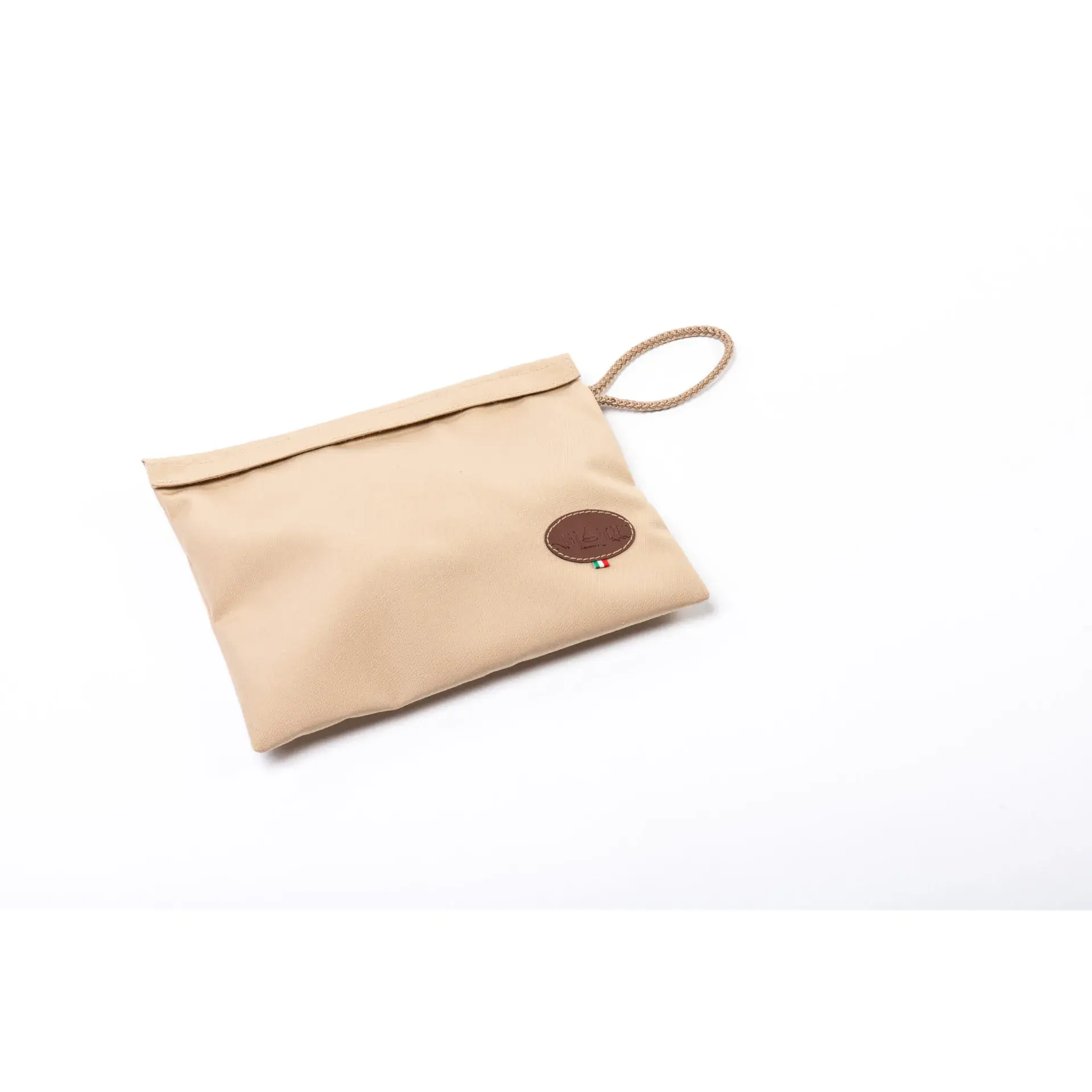 Document holder/pouch. Made from water-repellent fabric. A unique elegance for storing documents and/or being used as a pouch thanks to its convenient wrist handle.
