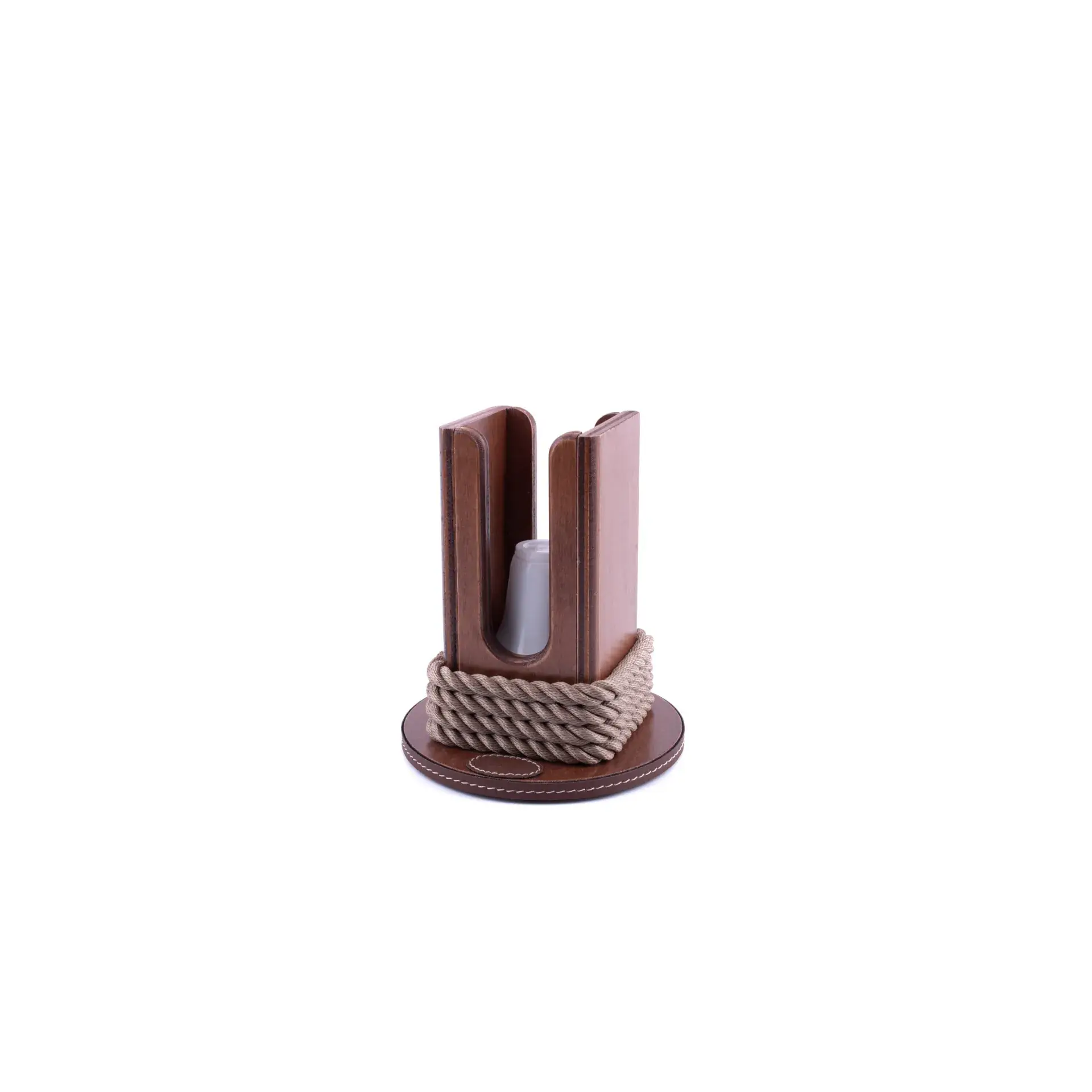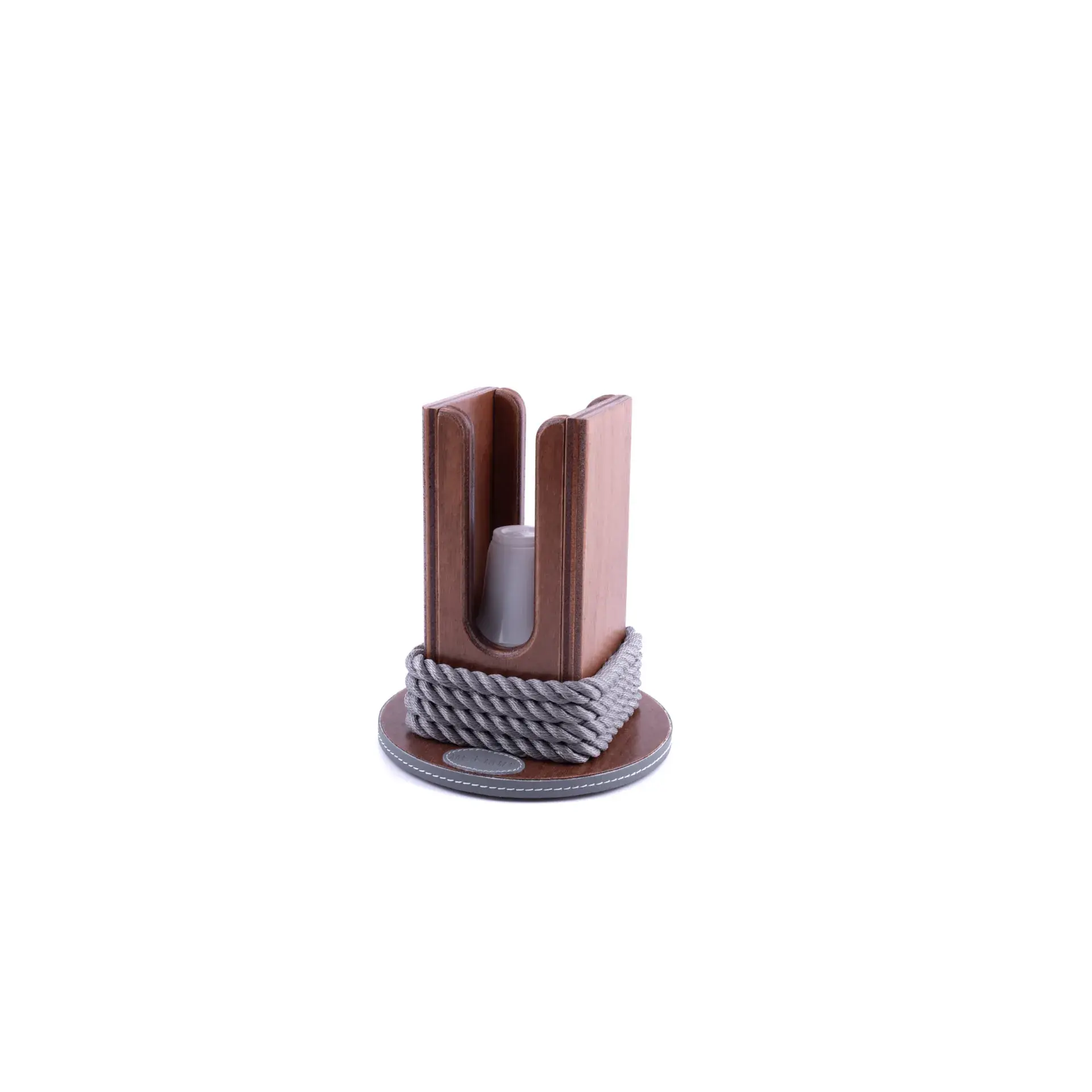Coffee cup holder in wooden stack – Coated product, made of wood. Elegant and simple, it allows for the insertion of a significant quantity of plastic and/or biodegradable cups, arranged in a stack