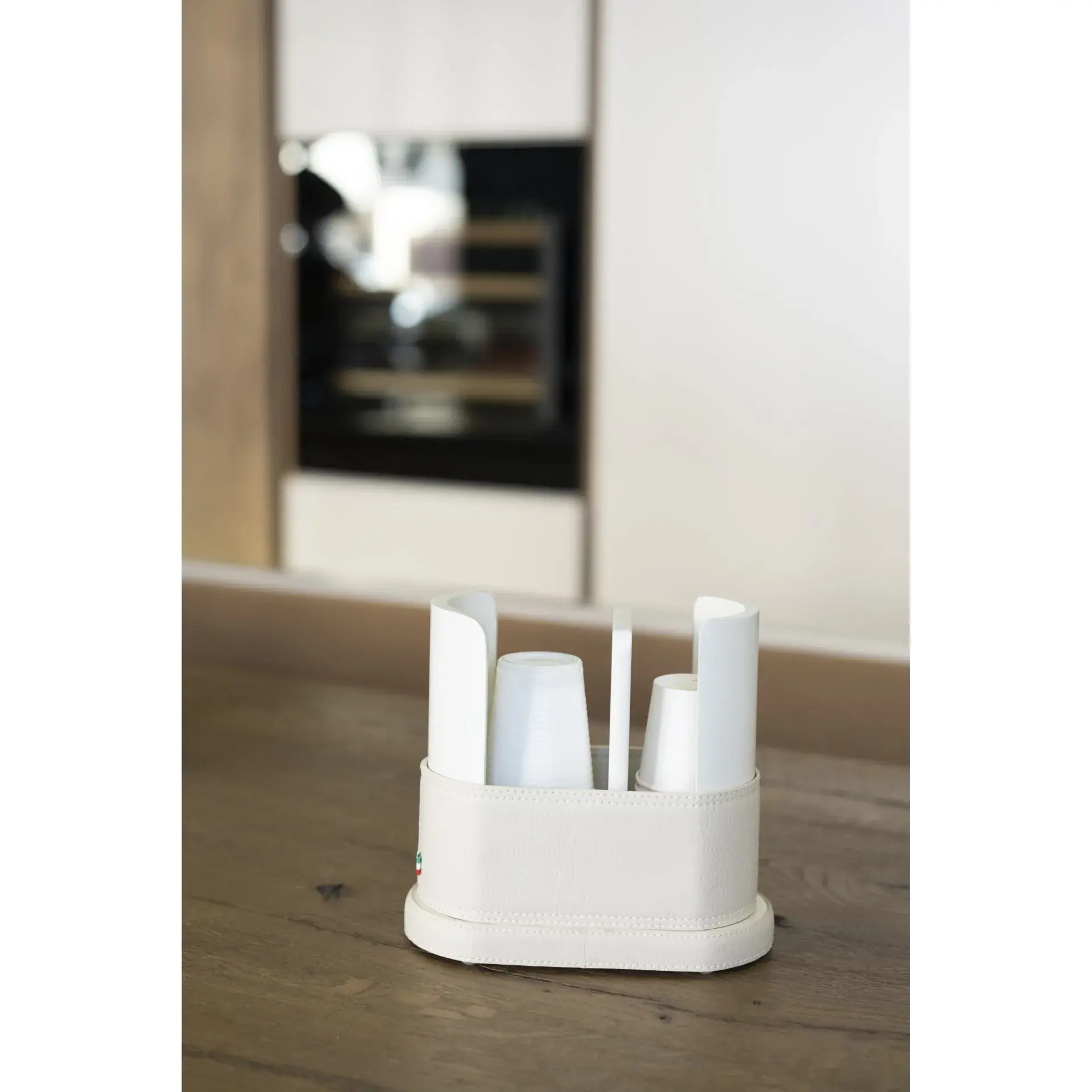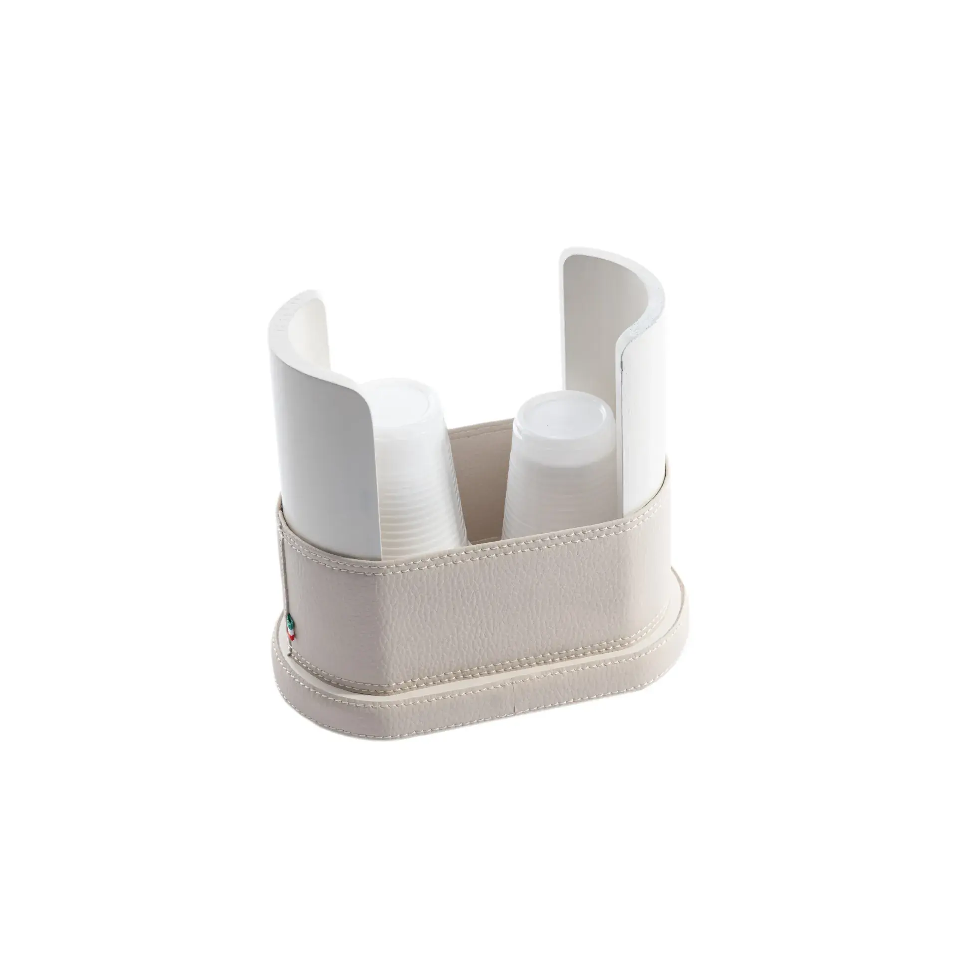 A container with dual use, the central separator is movable; if present, you can arrange both paper cups for water and coffee cups, if absent, a larger quantity of water cups.
