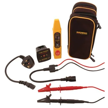 13A plug in transmitter, Elite receiver ; instructions, rugged hard carry case, TL93 leads with crocodile clips, 13A mains adaptor. Elite Professional Fuse Finder Kit Martindale FD650. The multi-purpose version of the popular FD550. Supplied in a robust case complete with transmitter and receiver, additional features include a 13A plug top lead for sockets and fused test lead set with crocodile clips for junction boxes, terminals and lighting circuits.