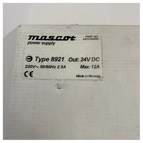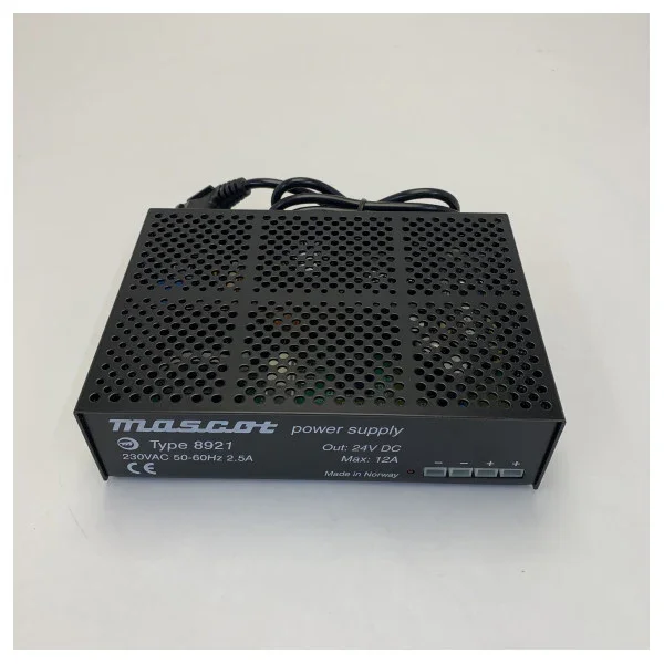The Mascot 8921-24 is an AC/DC adapter with a model number 8921-24. The output voltage is 24V (DC) and the maximum output current is 12A. The total output power is 270W. This adapter functions as a 'Power Brick' and accepts a standard AC input (alternating current) to provide the DC output (direct current). It is an essential component for equipment that requires a high degree of reliability and power stability.