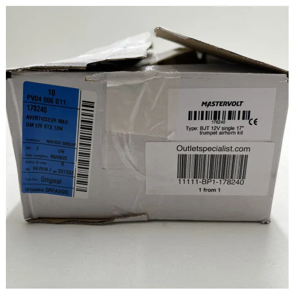 Marinco BJT 12V single 17 inch trumpet airhorn kit - 178240. Including compressor and solenoid kit.