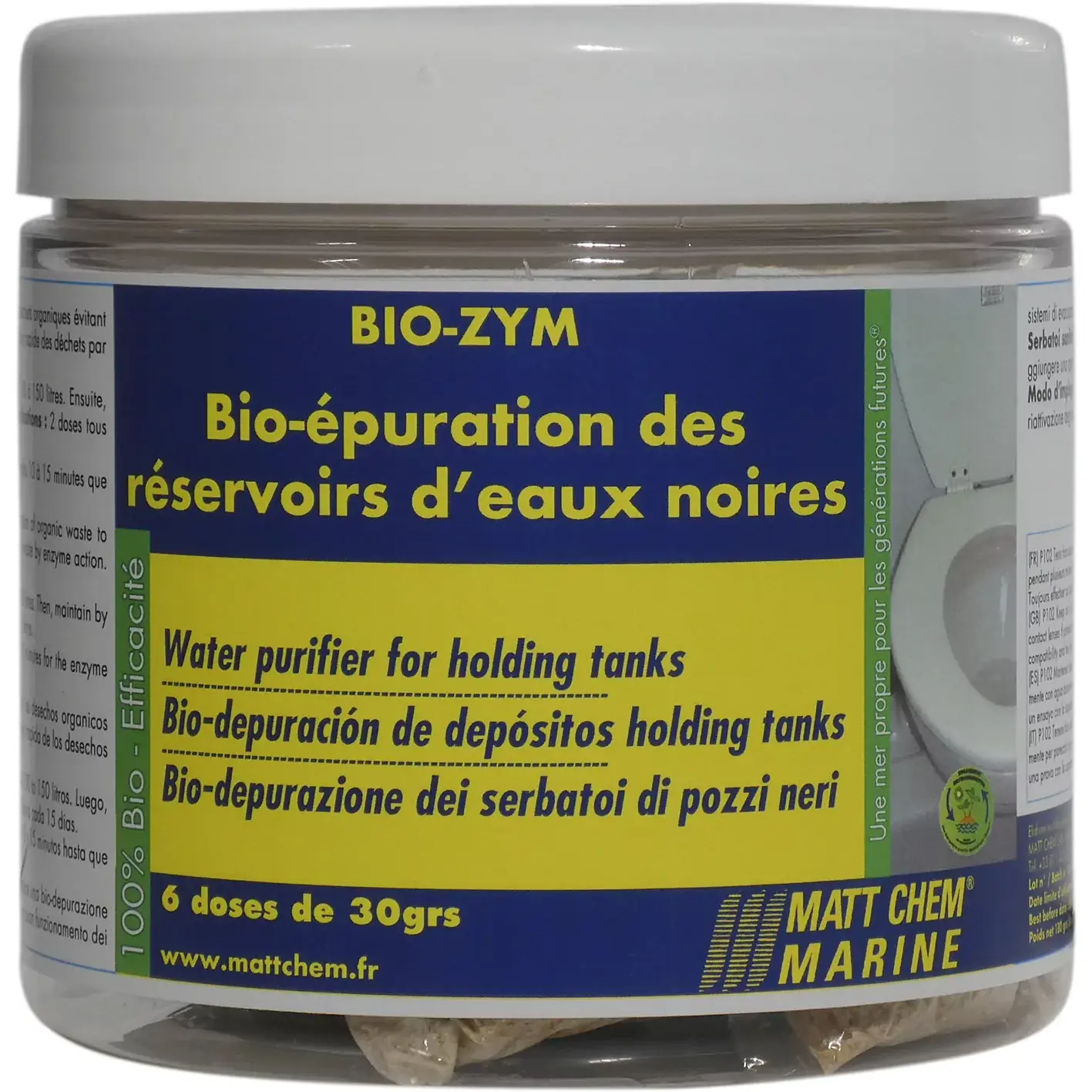 Bacteriological enzymatic water soluble dose that provides bio - purification of organic waste to prevent blocked pipes and emanation of unpleasant smells.