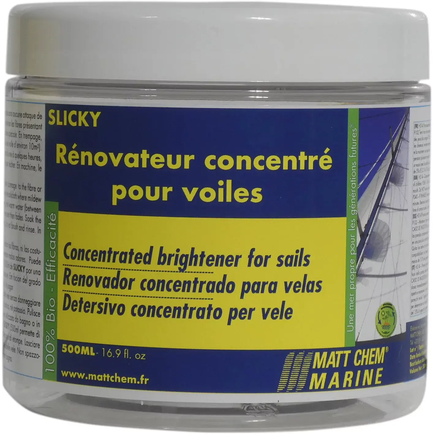 Concentrated washing powder which whitens sailcloth. Cleans and deodorises the sailcloth where mildew is present.
