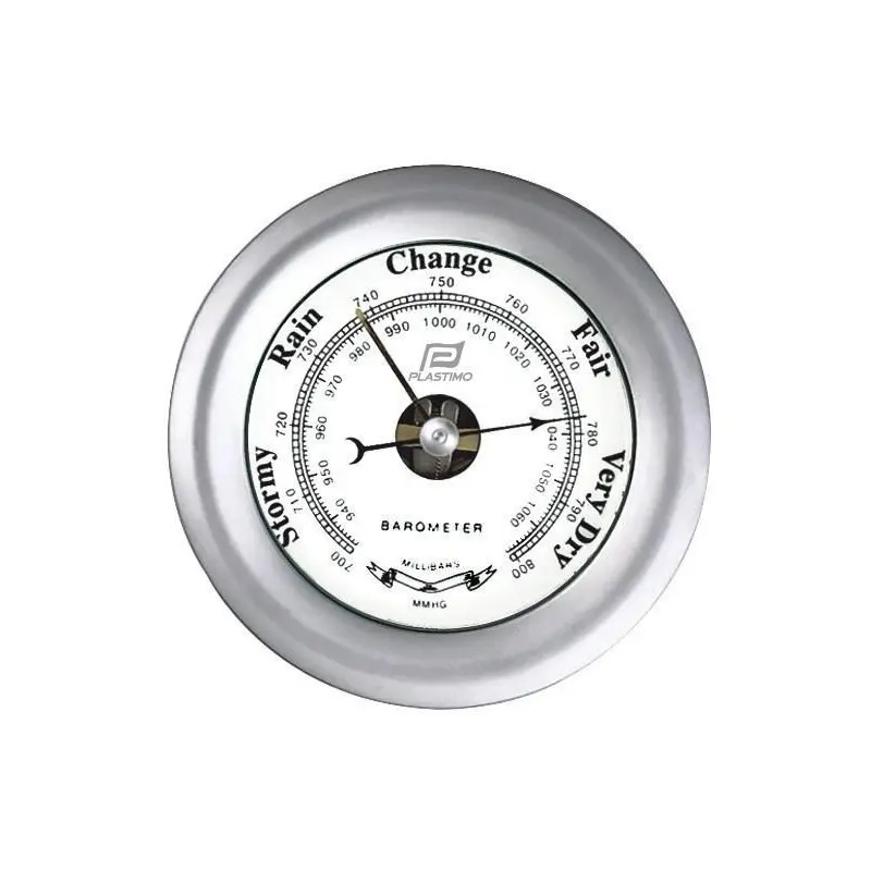 This 4" Matt Chromed Thermometer-Hygrometer offers precise temperature and humidity measurements.