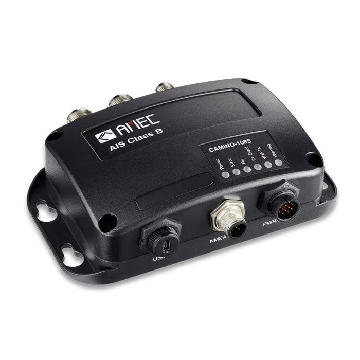 The AMEC Camino-108S is a compact and robust AIS Class B transponder designed to enhance maritime safety by providing precise vessel identification and collision avoidance capabilities. Its integrated antenna splitter allows for simplified installation, enabling the use of a single VHF antenna for both AIS and VHF radio communications.